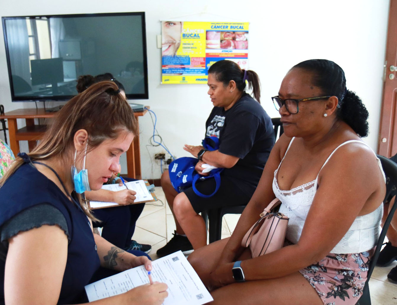 #PraTodosVerem: imagens de mulheres durante o atendimento do ‘Projeto Saúde Bucal”. Fim da descrição.