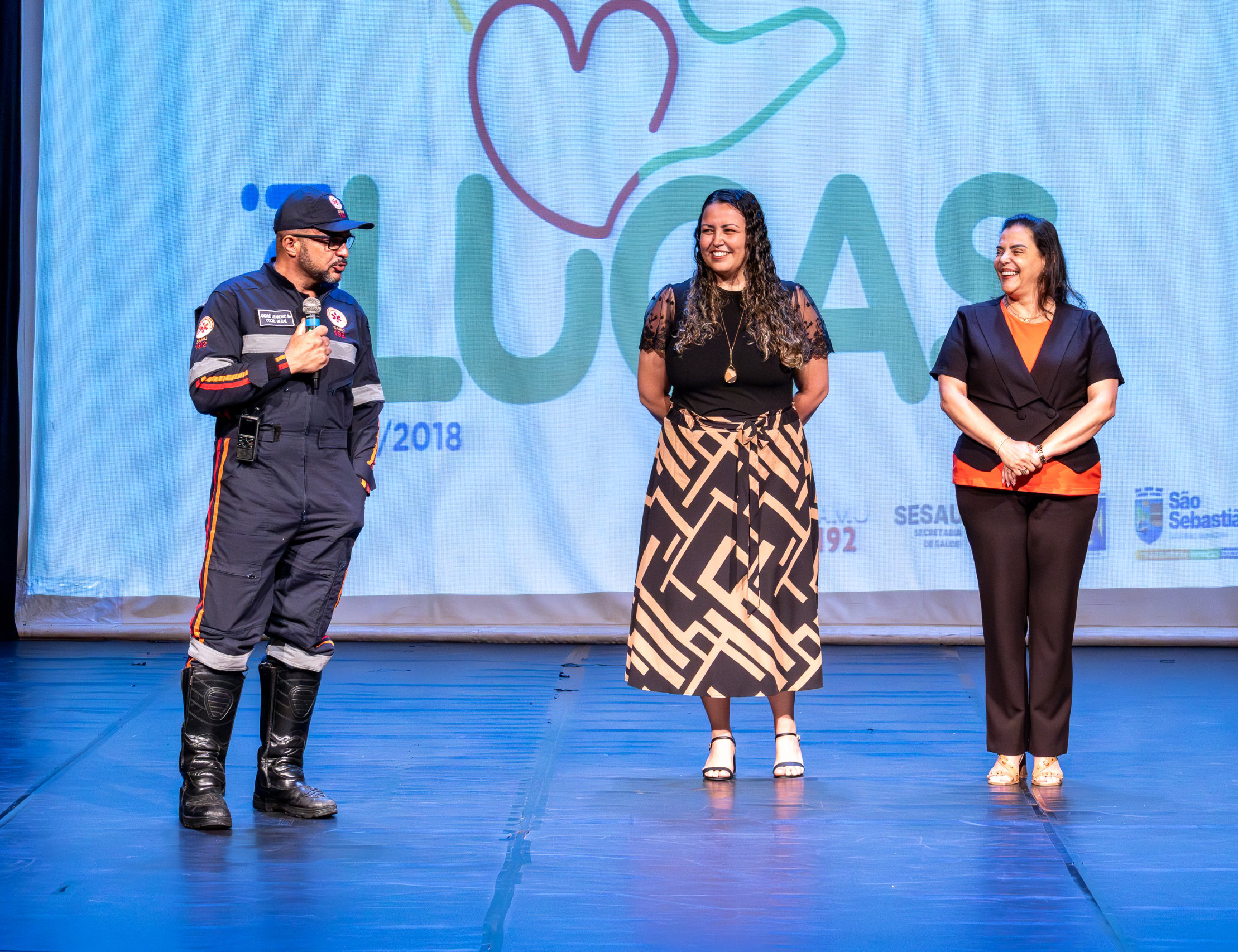 “Hoje vivemos um momento especial. Trata-se de um trabalho que começou em julho pelo cumprimento da Lei Lucas e que já salvou três vidas”, disse André Leandro, coordenador do SAMU no Litoral Norte, durante a solenidade no Teatro Municipal.
