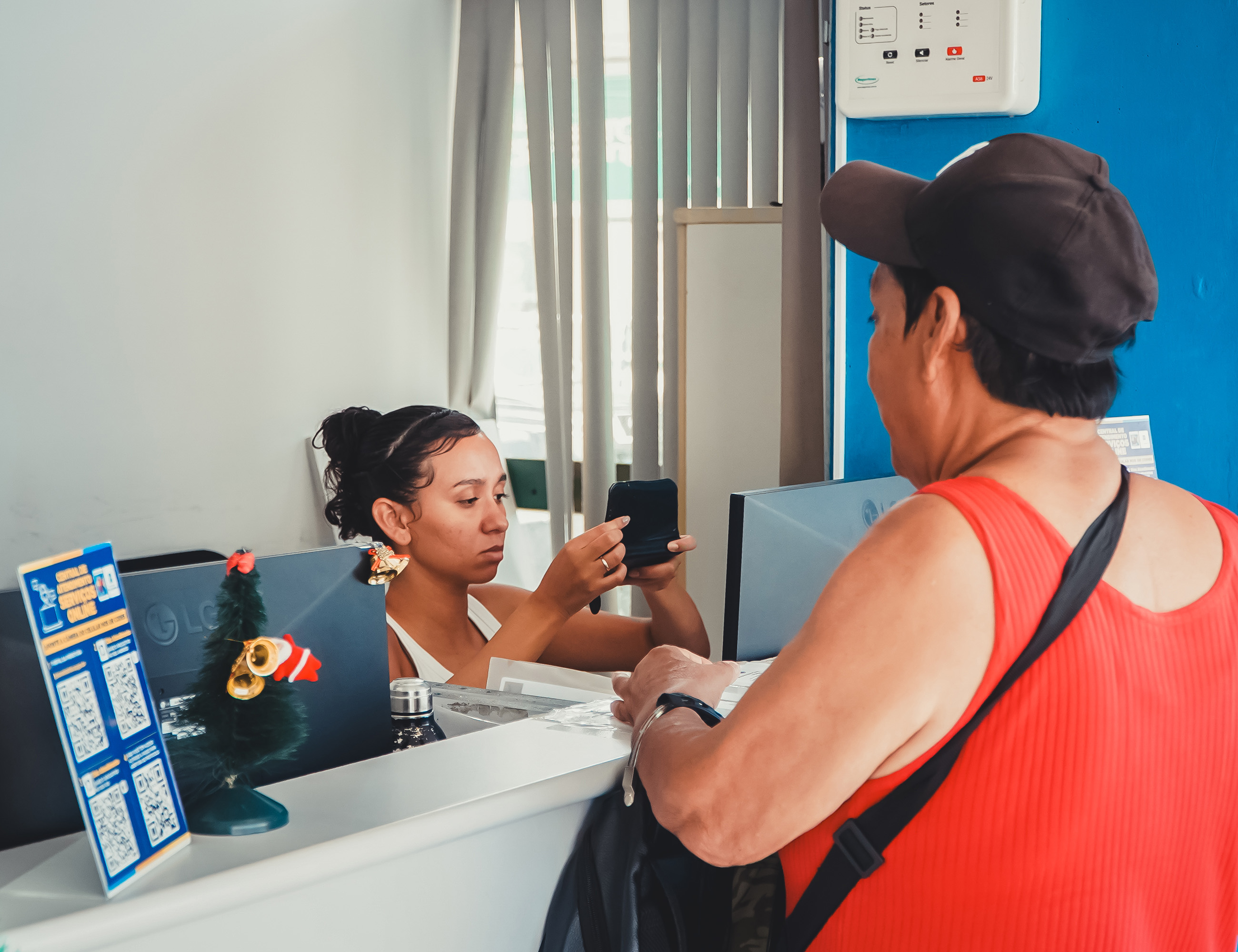 #PraTodosVerem: Imagens do Agiliza São Sebastião, mostrando a fachada e o interior com pessoas aguardando atendimento, um banner de serviços e uma caixa de uma campanha.