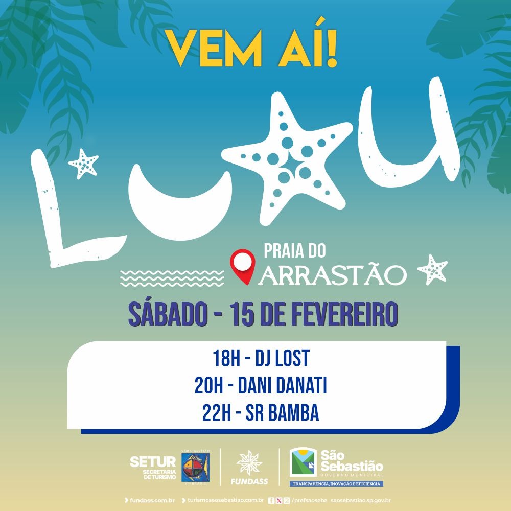 Neste sábado (15), a praia do Arrastão será palco de mais uma edição do Luau Arrastão. O evento inicia a partir das 18h, contando com apresentações de artistas e bandas locais.