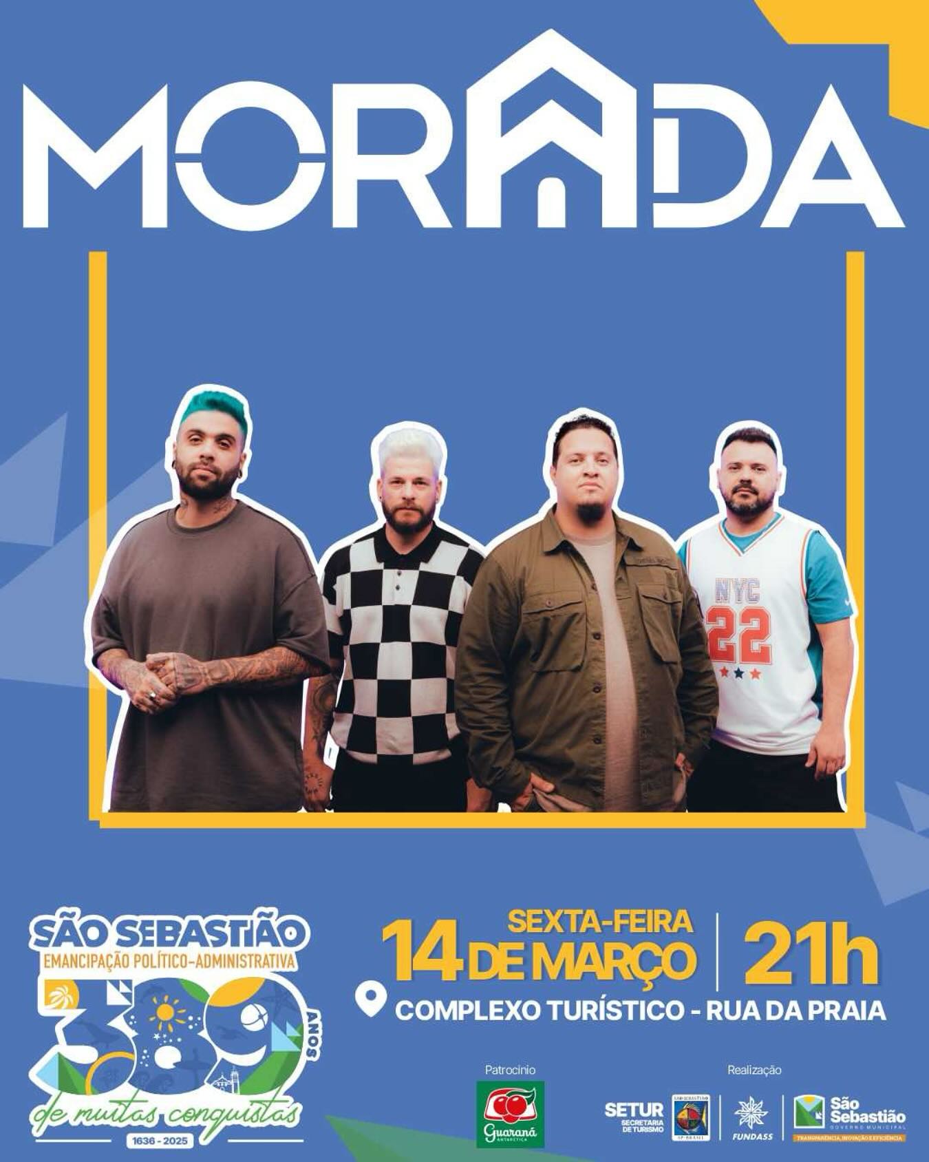 Abrindo a programação musical, a Banda Morada se apresenta no Complexo Turístico da Rua da Praia, no Centro Histórico. Com 14 anos de estrada, o grupo tem conquistado um público cada vez mais diversificado, proporcionando momentos de intensa conexão e alegria entre famílias de todas as idades. Conhecida por suas mensagens inspiradoras, a banda leva aos palcos o propósito de "gritar nos telhados o que Deus tem sussurrado em seus ouvidos".
