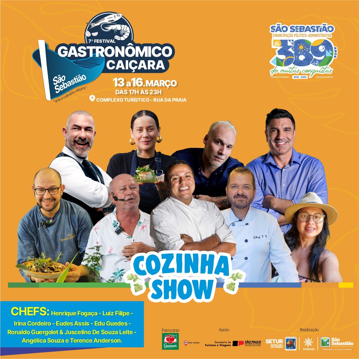 Com curadoria do renomado chef caiçara Eudes Assis, o evento ocorrerá das 17h às 23h e celebra a rica cultura e culinária local, integrando as comemorações do Dia do Caiçara (15 de março) e dos 389 anos de Emancipação Político-Administrativa de São Sebastião.