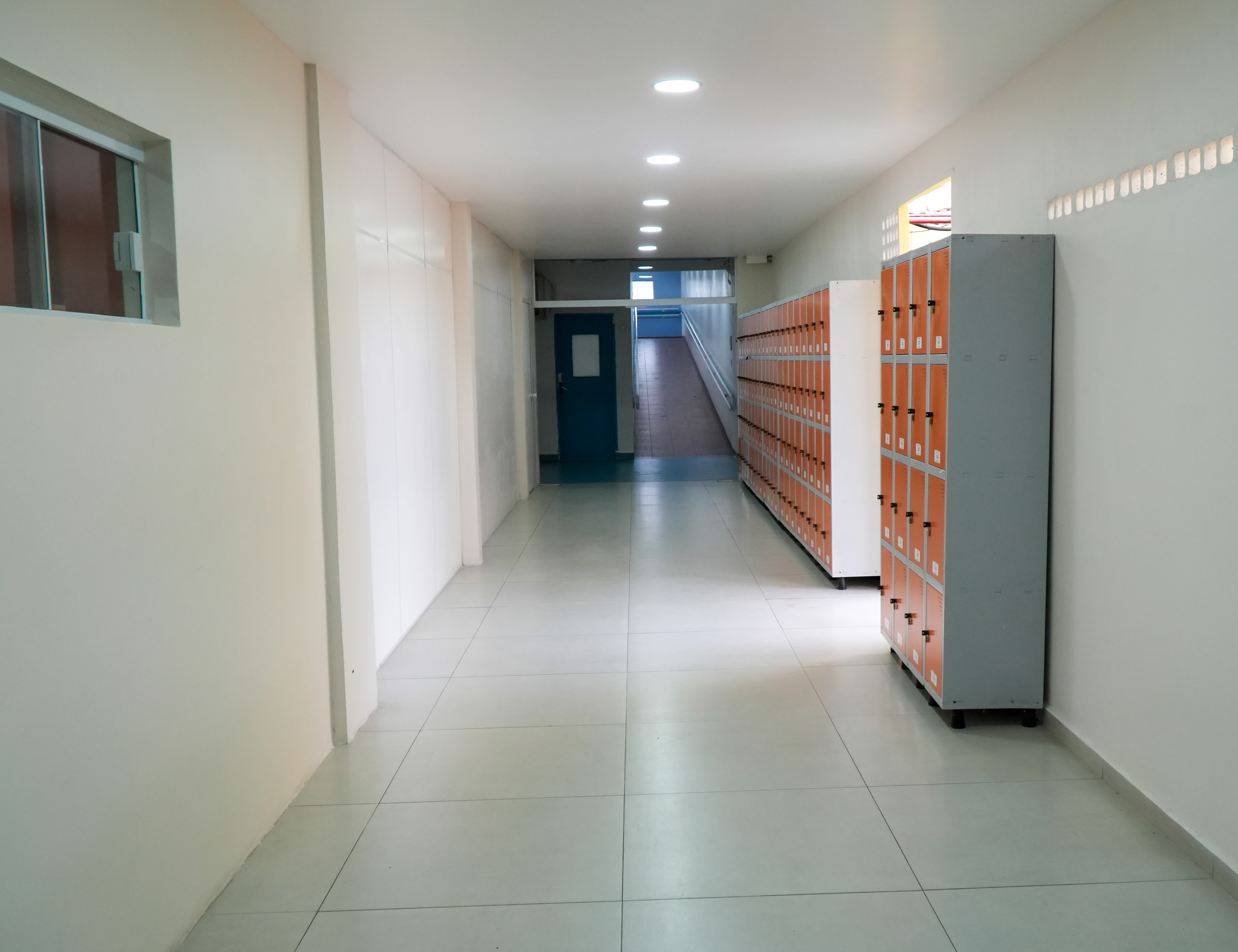 #PraTodosVerem: A sequência de três imagens apresenta a nova Sala de Descompressão para a Enfermagem Masculina de uma unidade de saúde, composta por um dormitório organizado com diversas beliches de madeira clara e colchões revestidos em material escuro. O ambiente possui iluminação embutida no teto, piso frio cinza e paredes brancas, destacando-se uma parede de fundo na cor terracota com frases motivacionais em letras brancas cursivas; acima da porta de entrada, uma placa de identificação exibe o nome do espaço e o logotipo institucional sobre um fundo branco. Fim da descrição.