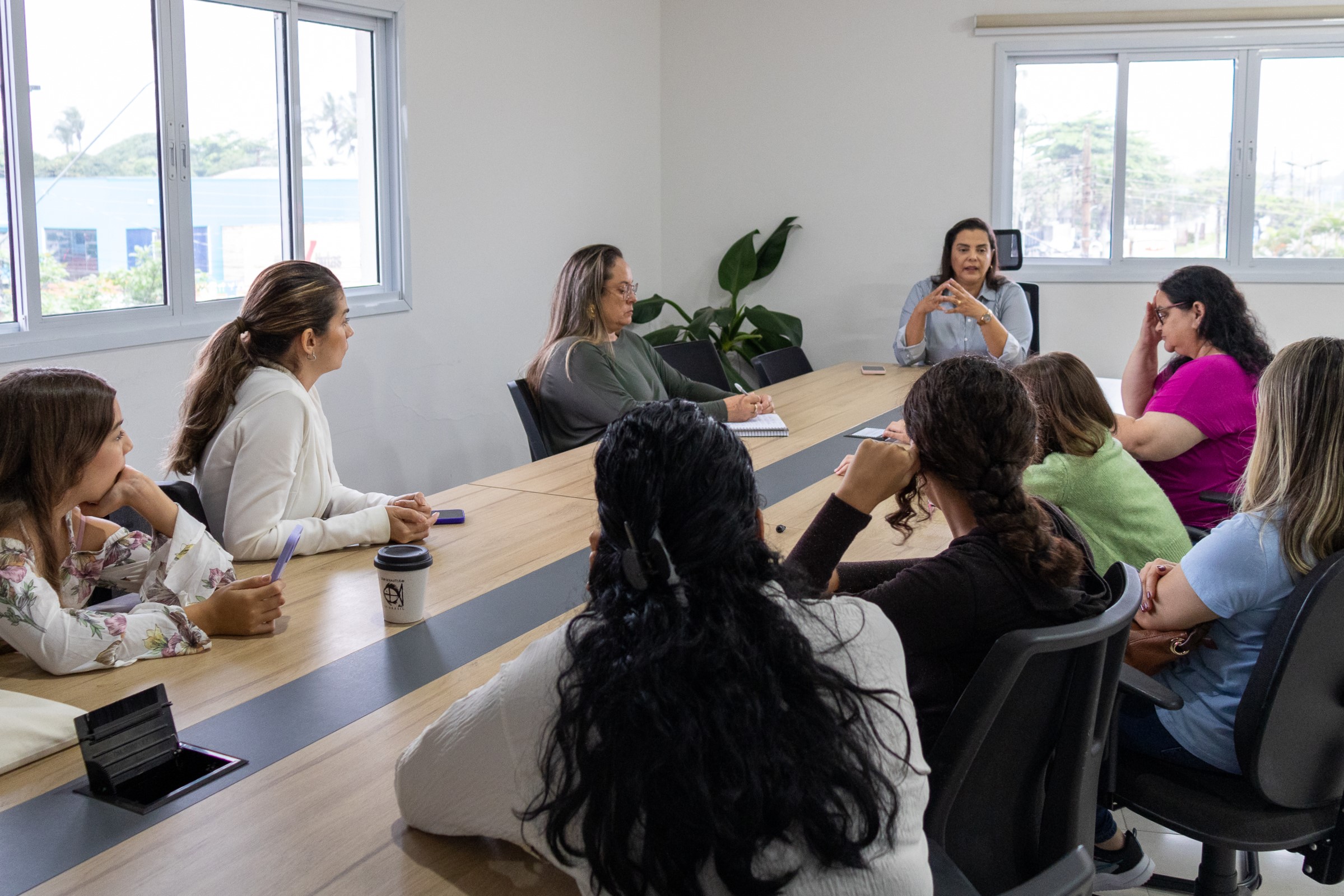 #PraTodosVerem: sequência de fotos mostra alunos intercambistas durante receptivo a comitiva italiana no Paço Municipal e em reunião na Secretaria da Educação. Fim da descrição.