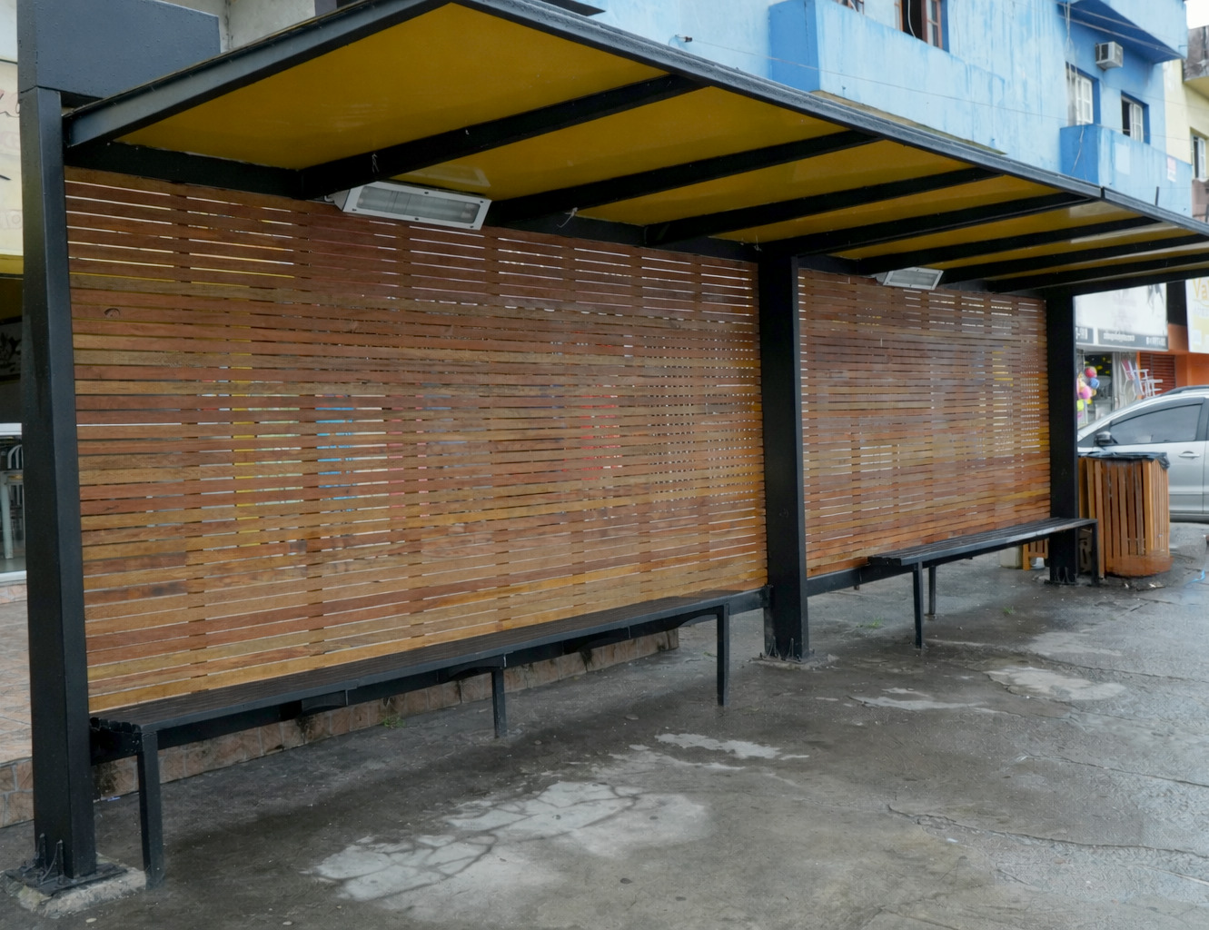 O novo ponto segue o mesmo padrão do modelo implantado inicialmente na Topolândia, produzido integralmente pelos profissionais da Sesep. A estrutura conta com acabamento em madeira, garantindo um visual mais harmônico e alinhado à identidade da cidade, além de proporcionar mais conforto e proteção aos usuários do transporte público.