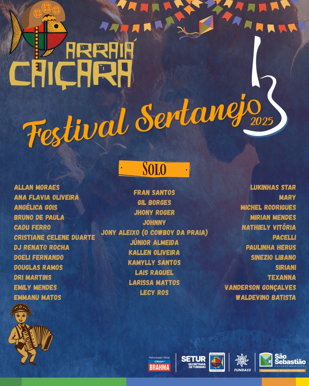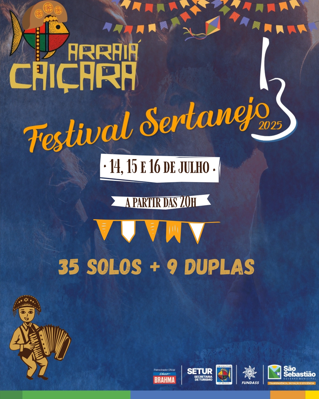 Celebrando mais de três décadas de valorização da cultura popular, nas noites de 14, 15 e 16 de julho ocorre o tradicional Festival Sertanejo do Arraiá Caiçara de São Sebastião 2025, um concurso de cantores da região voltados para intérpretes profissionais e amadores.