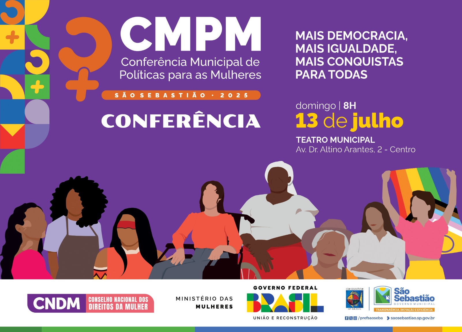 Com o compromisso de promover igualdade de gênero e fortalecer o protagonismo feminino, São Sebastião avança na construção coletiva da 4ª Conferência Municipal de Políticas para Mulheres, que ocorrerá neste domingo (13/7), a partir das 8h, no Teatro Municipal.