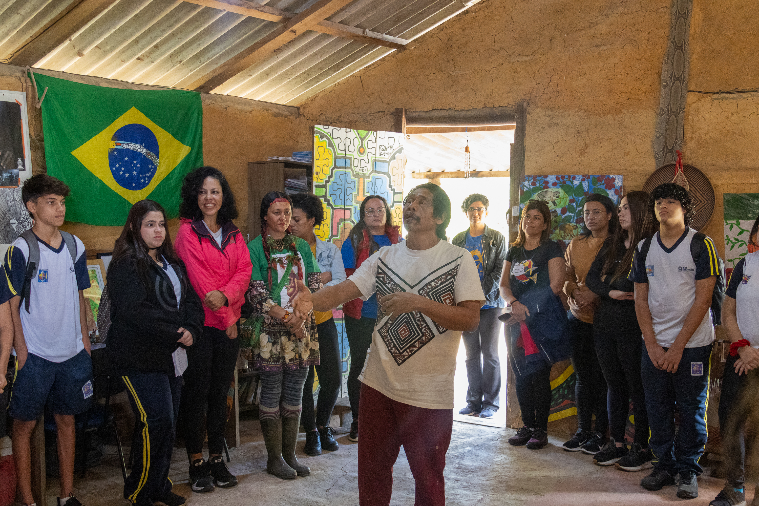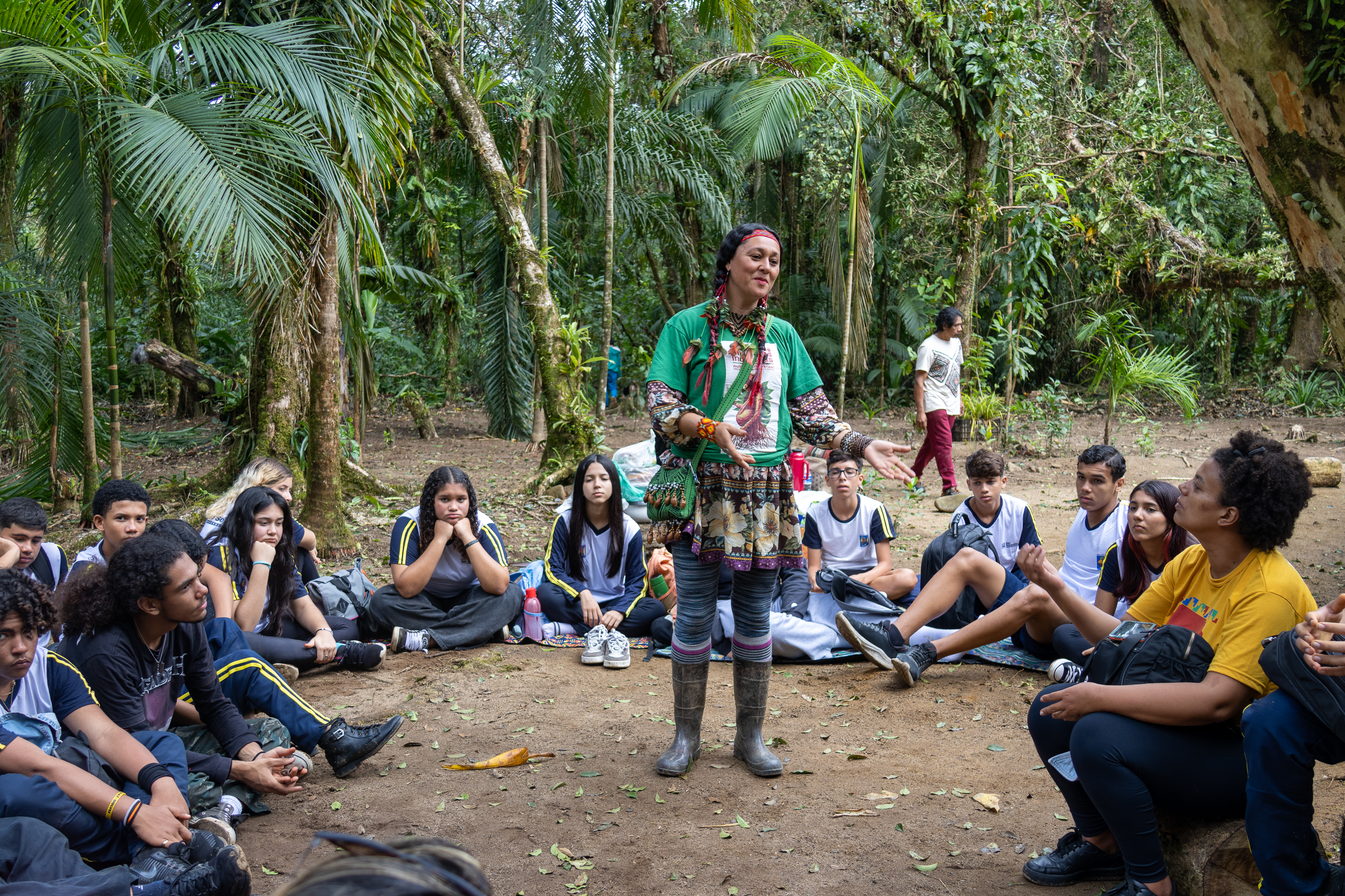 A vivência foi conduzida por Carlos Papa, coordenador da Escola Viva Guarani, e Cristine Takua, coordenadora geral das Escolas Vivas junto ao Instituto Selvagem. Durante o encontro, os estudantes participaram de reflexões, caminhadas pela mata, brincadeiras e interações com cânticos guarani, atividades que buscam estimular a concentração, a alegria e o que os povos originários chamam de Teko Porã, conceito filosófico, político, social e espiritual que expressa o viver em harmonia e respeito com a natureza.
