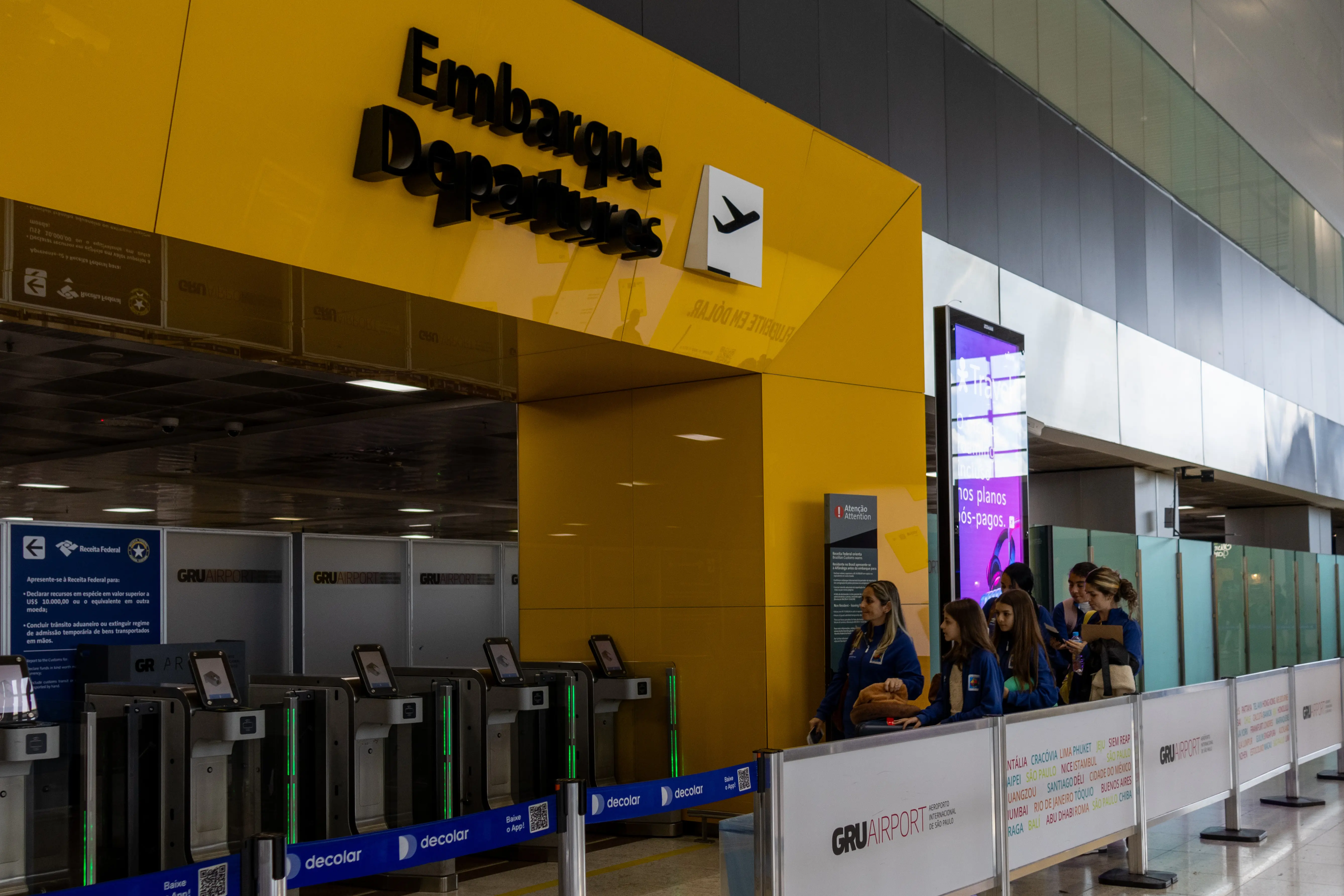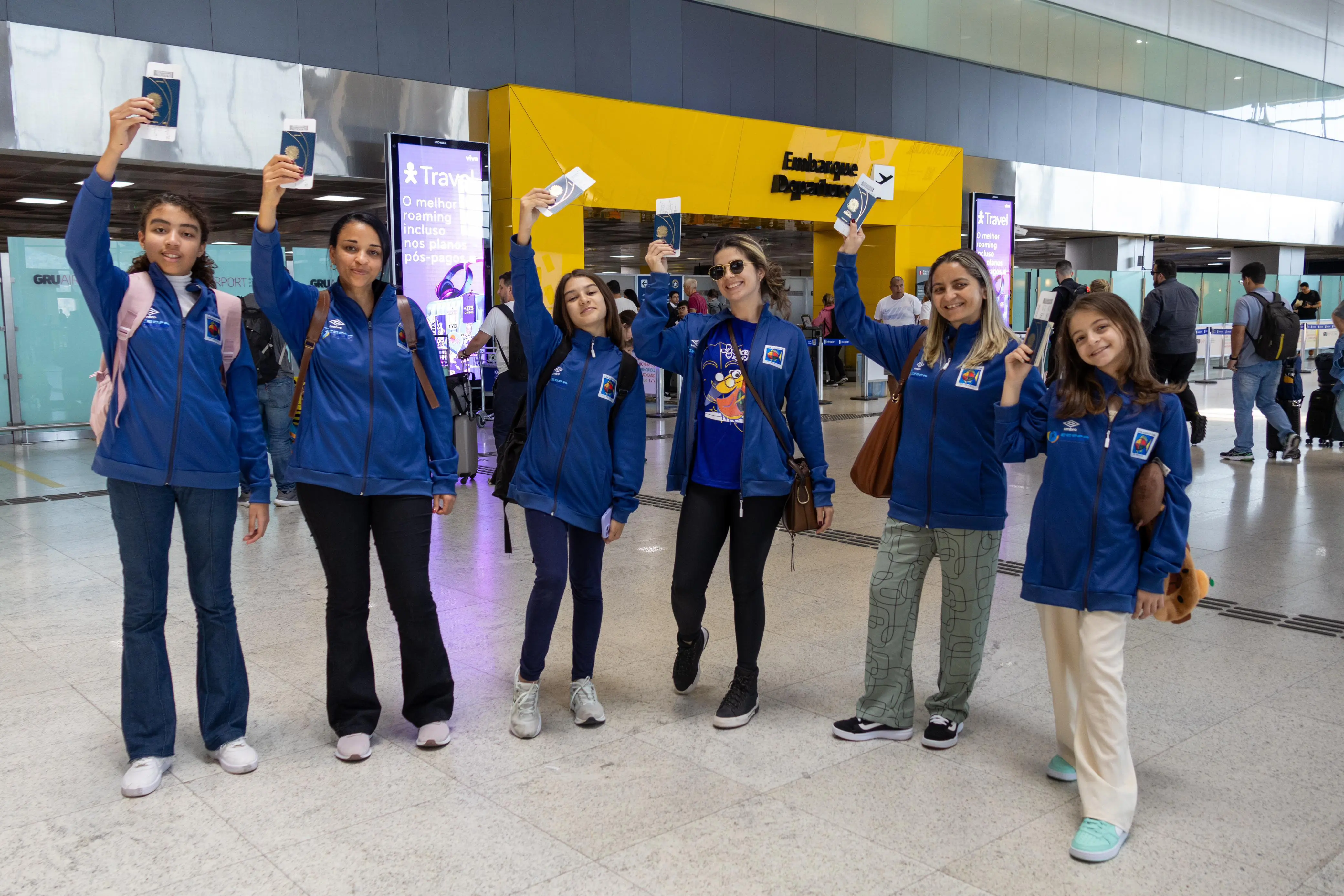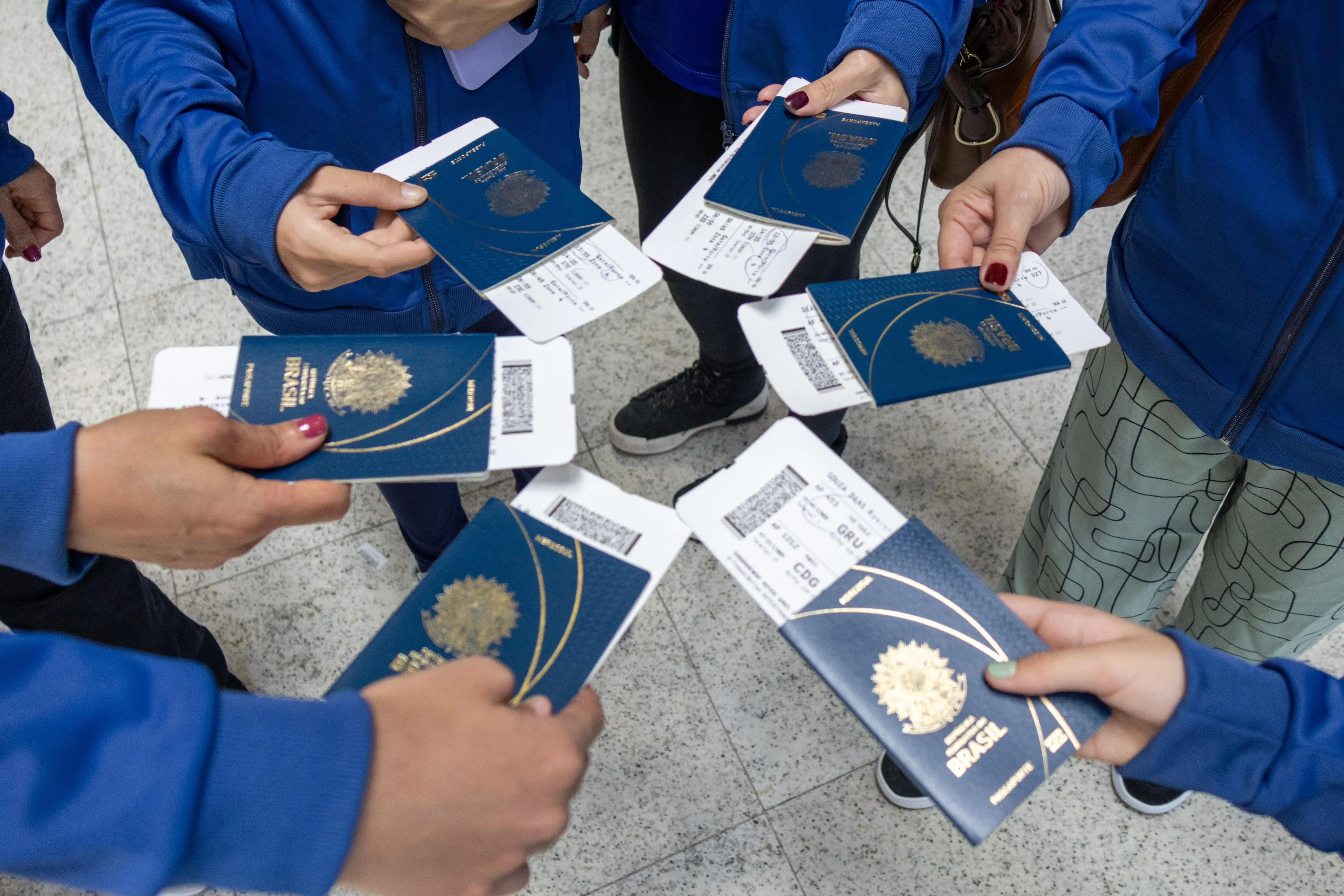 PraTodosVerem: sequência de fotos mostra intercambistas embarcando no aeroporto. Fim da descrição.