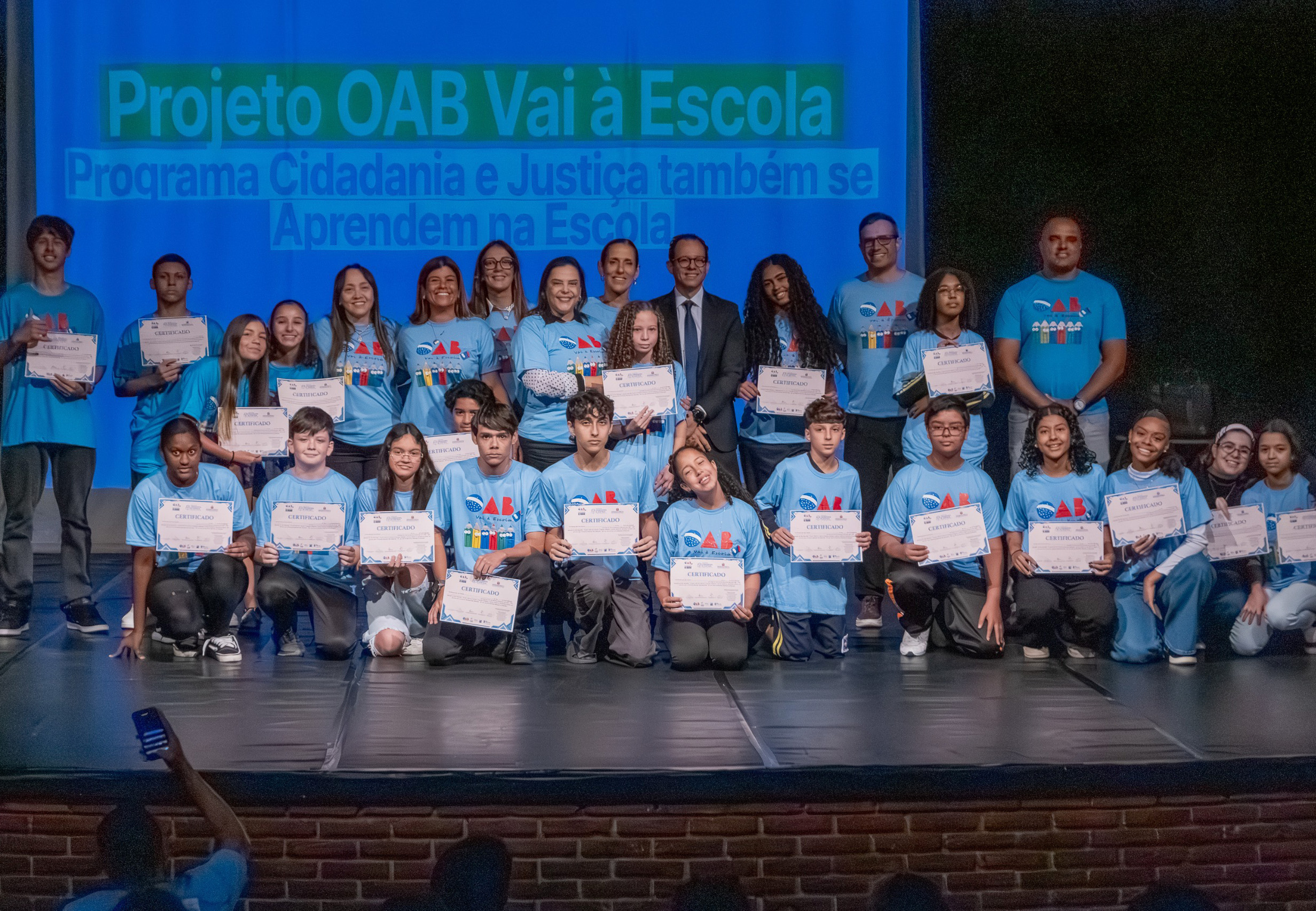 Estudantes da rede municipal receberam seus certificados de participação nos projetos ‘OAB vai à Escola’ e ‘Cidadania e Justiça Também se Aprendem na Escola’, em cerimônia realizada na última quinta-feira (6/11), no Teatro Municipal de São Sebastião, no Centro.