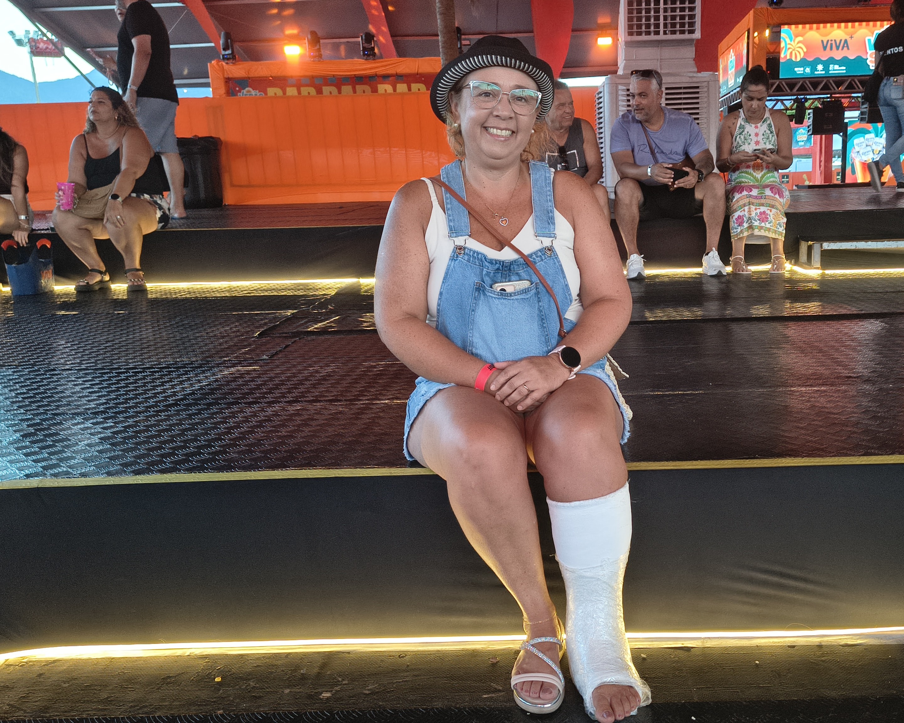 Mesmo com o pé engessado, a inspetora de qualidade Patrícia Kelly da Silva Almeida, de 49 anos, moradora de Sorocaba, no interior paulista, não perdeu a oportunidade de acompanhar a apresentação de Ana Castela, que foi transferida do sábado (10/1) para o domingo (11/1), após a artista enfrentar um problema de saúde em razão de cálculo renal.