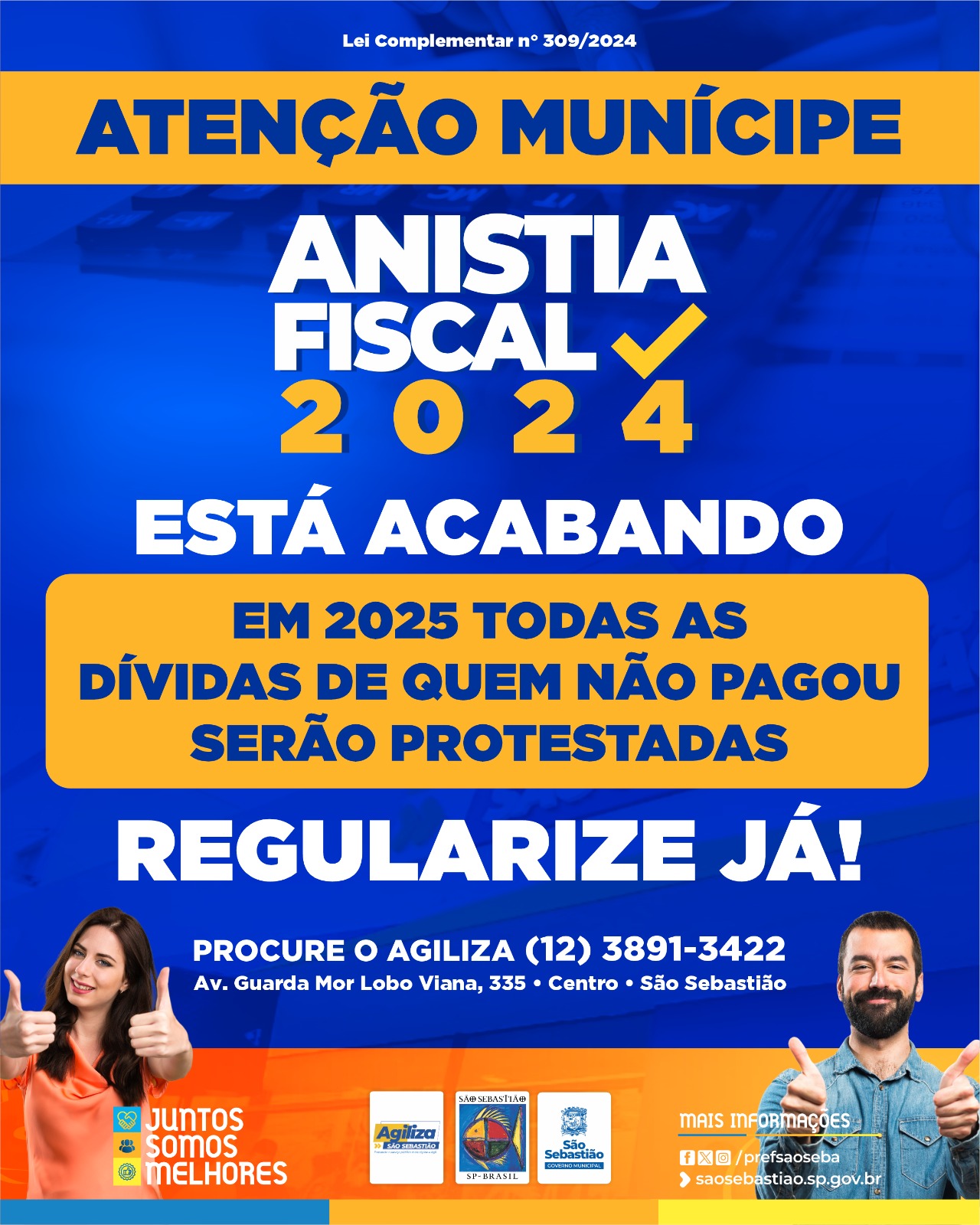 De acordo com a Secretaria da Fazenda (SEFAZ), em 2025, as dívidas não pagas serão protestadas. Até o momento, mais de 1.000 contribuintes procuraram o Agiliza São Sebastião, em busca de informações ou levando documentos para quitação de débitos.