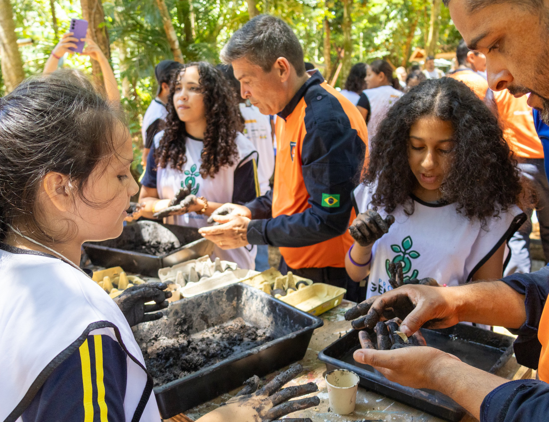 Durante a programação, os alunos entregaram oficialmente as bolas de sementes produzidas ao longo do projeto, participaram de trilhas guiadas por eles mesmos e realizaram demonstrações práticas sobre a técnica utilizada para adensamento de áreas degradadas. Em um movimento de troca de saberes, os estudantes também ensinaram os profissionais presentes, fortalecendo o espírito colaborativo e o sentimento de pertencimento ao bioma local.
