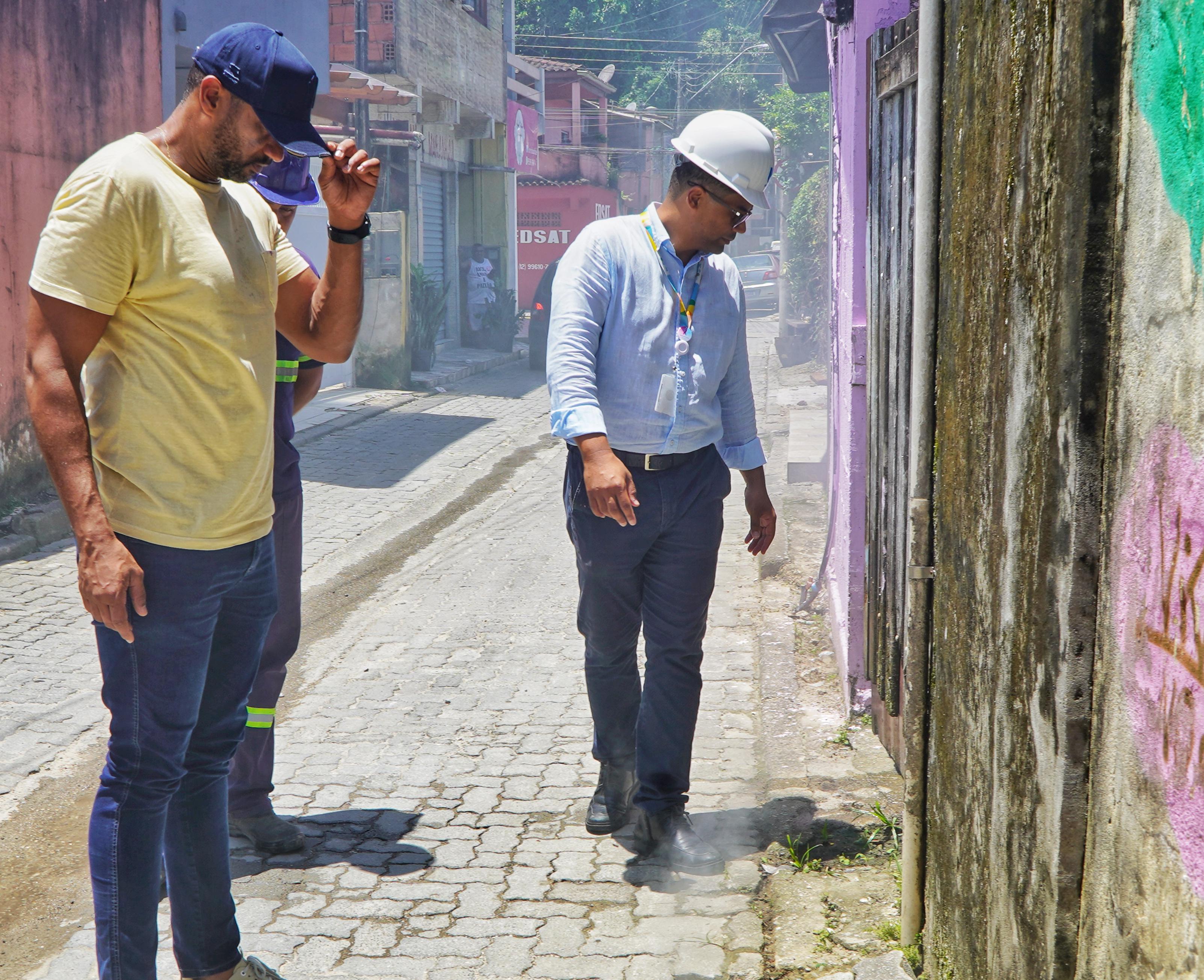 Ainda no mesmo dia, na Vila Sahy, a Sabesp utilizou um insuflador de fumaça para identificar pontos da rede de esgoto com frestas ou aberturas que permitem a entrada de água da chuva. Essa infiltração sobrecarrega o sistema e pode gerar transbordamentos. Os moradores foram orientados e, nos casos necessários, notificados. A Sabesp também informou que as situações não resolvidas serão encaminhadas à fiscalização ambiental para as providências cabíveis.