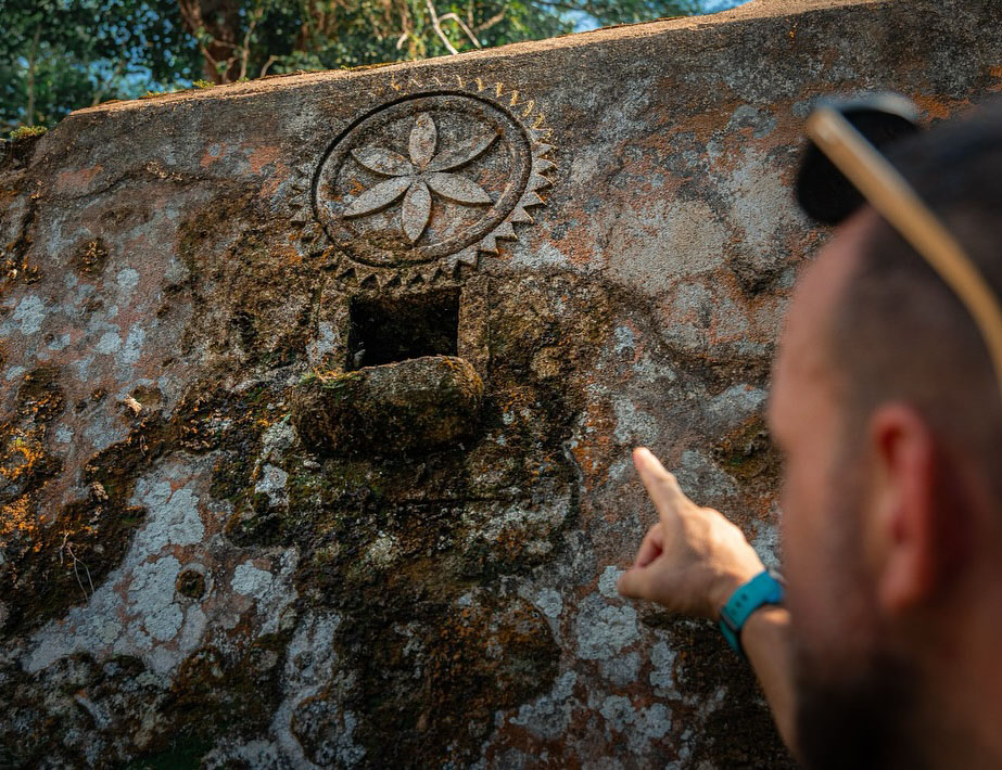 #PraTodosVerem: Equipes realizam levantamento técnico no Sítio Arqueológico de São Francisco, em São Sebastião. As imagens mostram profissionais utilizando equipamentos como tripés, scanner a laser e drone para registrar e mapear a área das ruínas históricas cercadas pela mata. Fim da descrição.