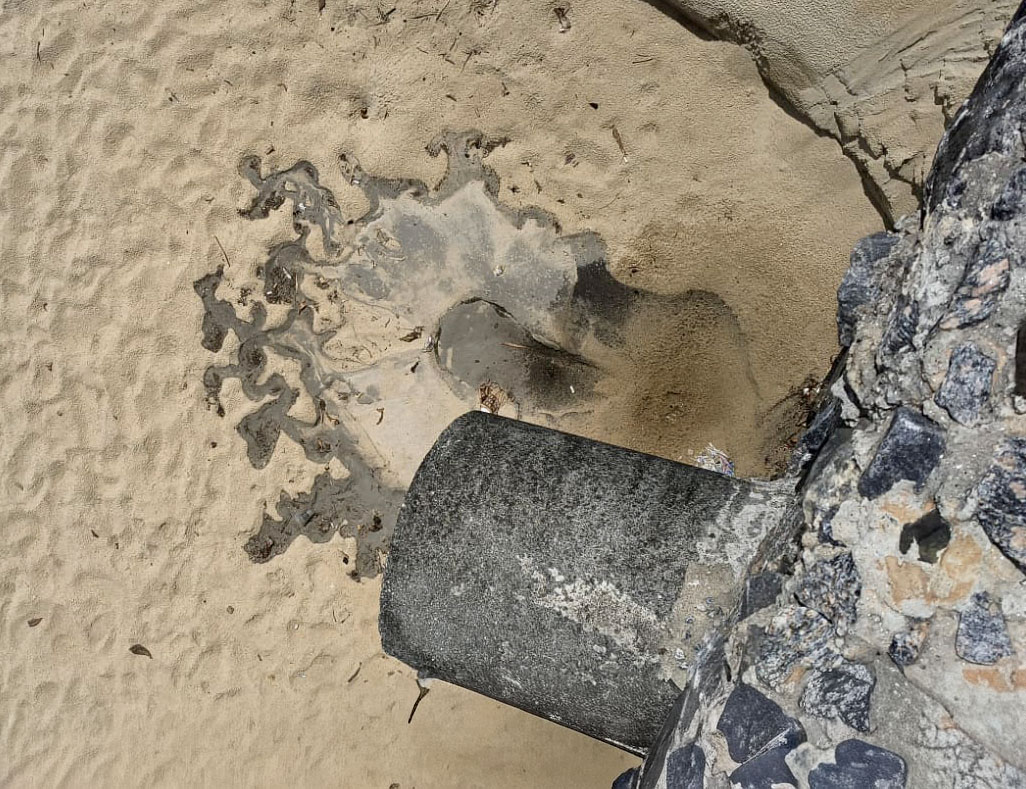 Registro fotográfico realizado durante a vistoria comprovou a presença de esgoto na galeria de drenagem, bem como manchas escorrendo na faixa de areia da praia. Caso a irregularidade persista, o empreendimento poderá sofrer sanções mais severas, incluindo interdição.