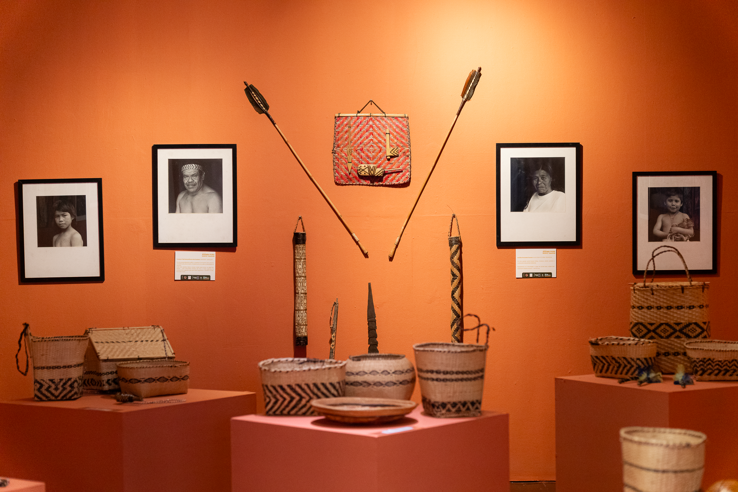 Contando com diversos registros fotográficos, peças de cerâmica, artesanatos indígenas, arco e flecha, lanças de madeira, maracás e telas com pinturas tradicionais, também são exibidos na exposição 14 documentários produzidos pelo cineasta indígena Carlos Papá.