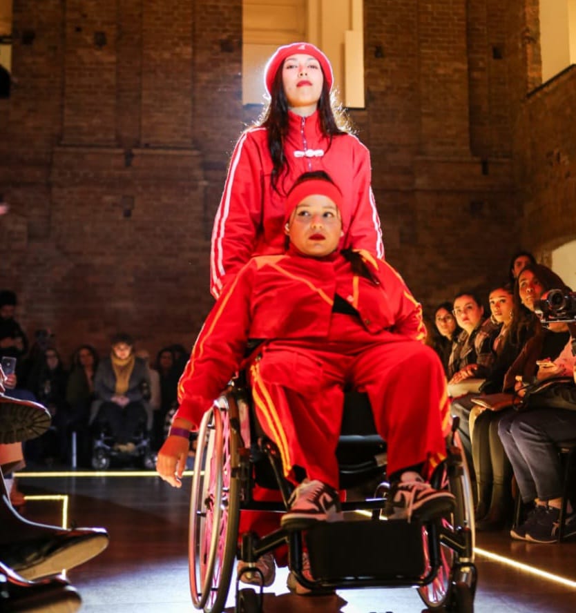 #PraTodosVerem: a primeira imagem são duas mulheres uma sentada numa cadeira de rodas e a outra conduzindo a cadeira em cima de uma passarela na final do desfile de Moda Inclusiva, a próxima imagem, é uma menina de 12 anos sentada em cadeira de rodas e desfilando com sua roupa na passarela, a terceira foto é de um menino de 20 anos sentado em cadeira de rodas também desfilando na passarela e a última foto da secretaria da Sepedi, da primeira dama de São Sebastião e do secretário de Estado dos Direitos da Pessoa com Deficiência, Marcos da Costa. Fim da descrição.