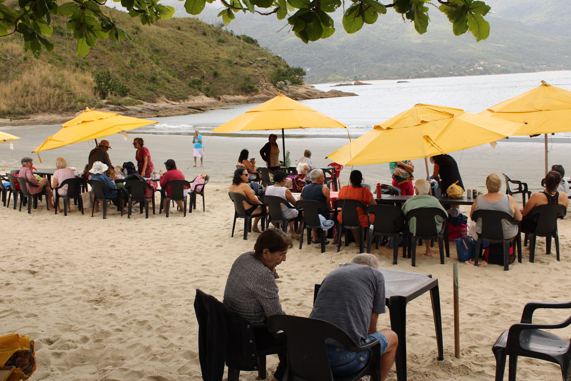 Durante os dias de turismo em São Sebastião, os idosos poderão participar de dinâmicas, fazer refeições juntos e curtir o dia em contato com a natureza na areia de Praia Grande.