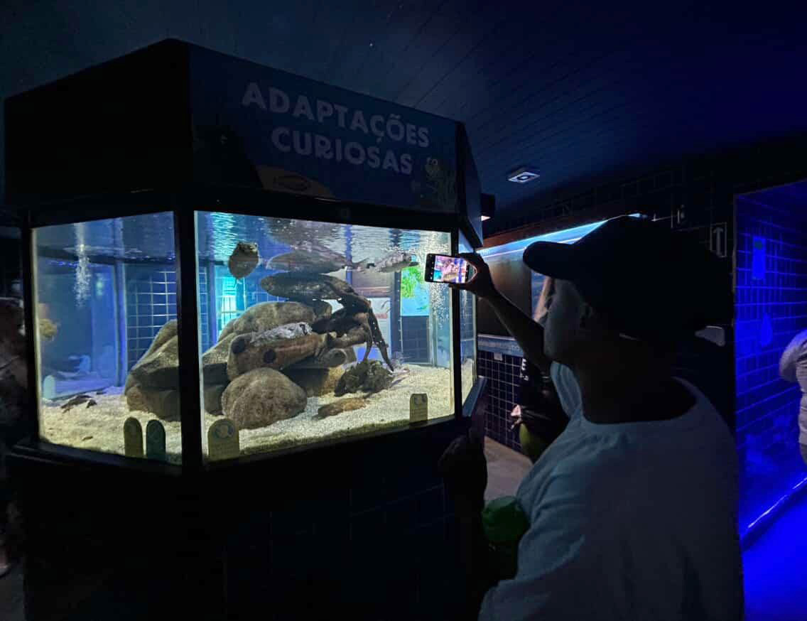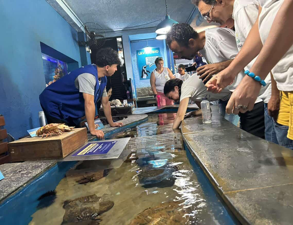 Durante o passeio, os participantes puderam conhecer diversos aquários e paludários que abrigam diferentes espécies marinhas, como tubarões, pinguins, lagostas e peixes tropicais. O grupo também participou de uma atividade interativa, na qual tiveram contato com animais pequenos e inofensivos, como estrelas-do-mar. Além disso, visitaram uma área educativa dedicada à conscientização ambiental, com foco no descarte correto do lixo e nos impactos da poluição nos oceanos.
