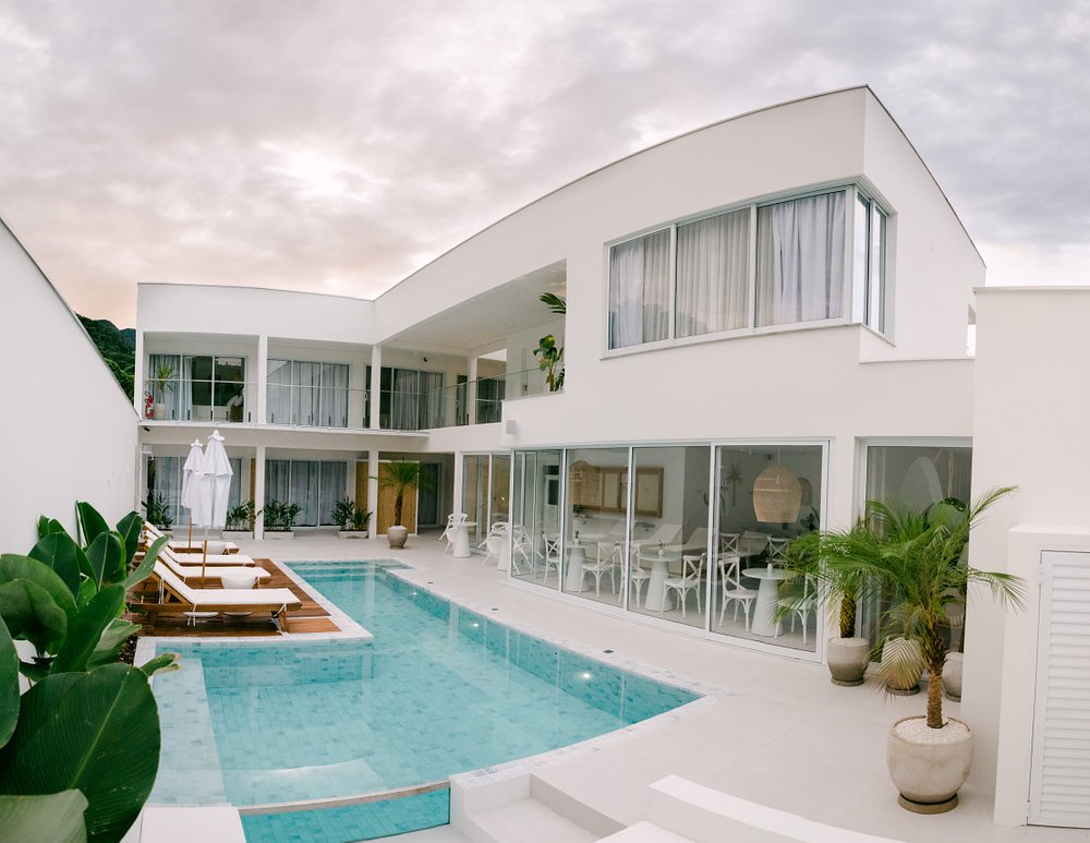 #PraTodosVerem: imagens da Pousada Villa Blu Maresias, Pousada Porto Mare, Olisa Hotel Boutique e o Hotel Maui Maresias. Fim da descrição.
