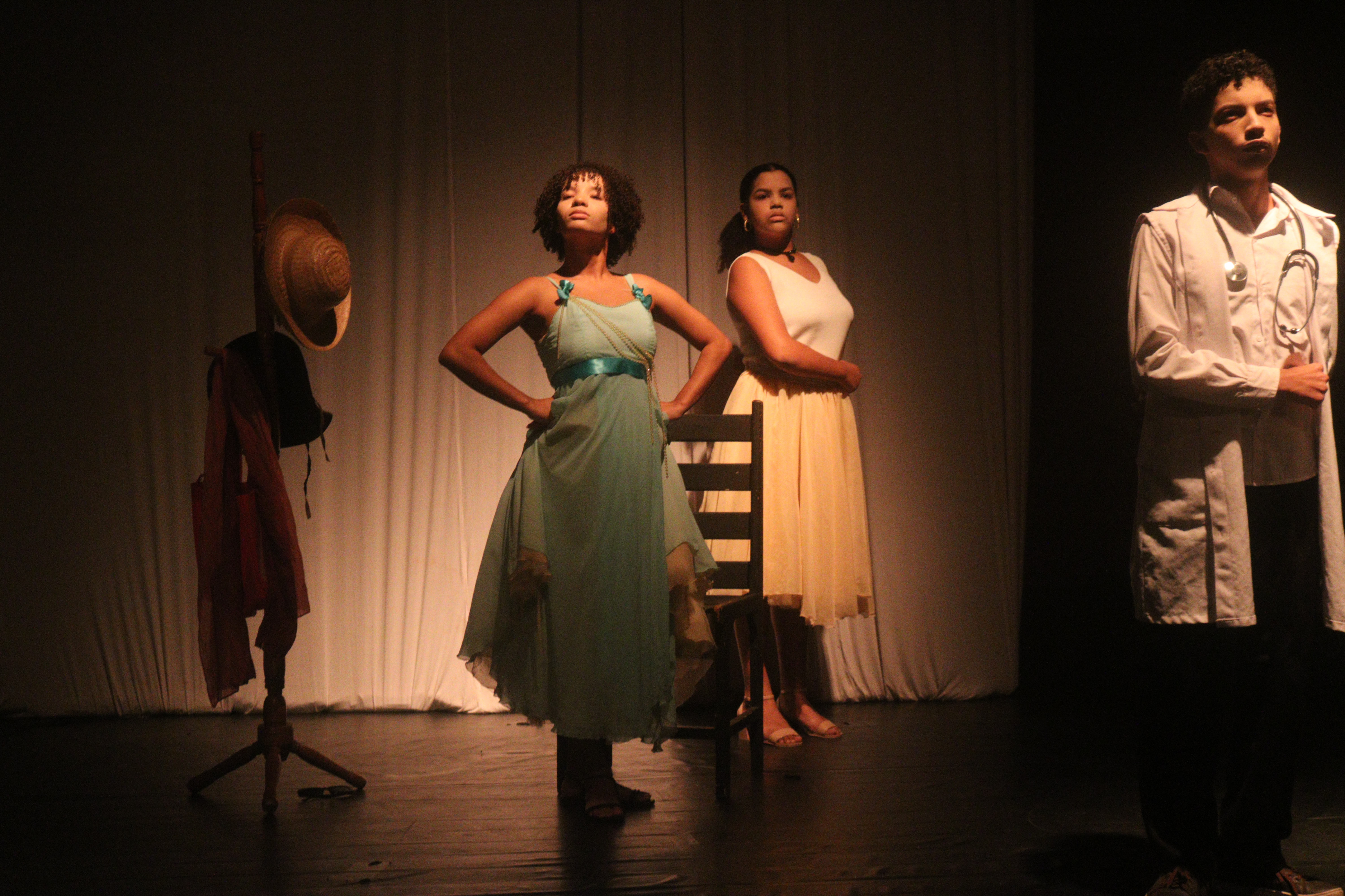 #PraTodosVerem: imagens do espetáculo ‘O Doente Imaginário’, apresentado pelo Grupo de Teatro do Pés no Chão. Fim da descrição.