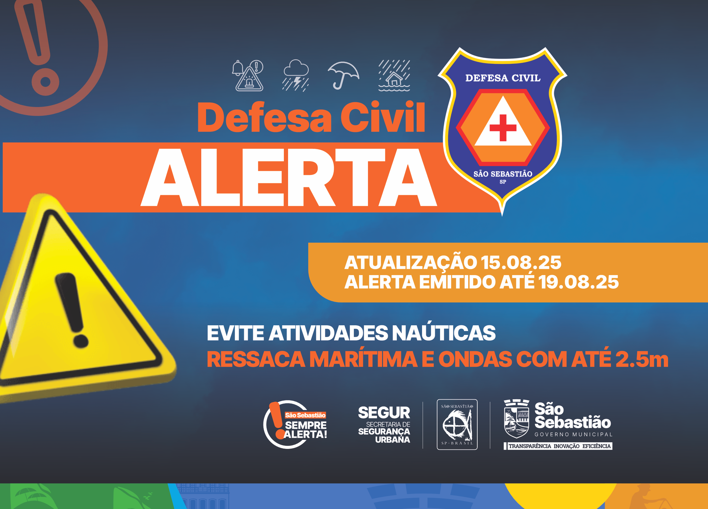 A orientação da Defesa Civil e da Marinha é para que navegantes, comunidades de pesca e esporte, que consultem as informações meteorológicas antes de saírem ao mar. Caso sejam pegos no mar durante a virada do tempo, procurem abrigos até que seja seguro o retorno.