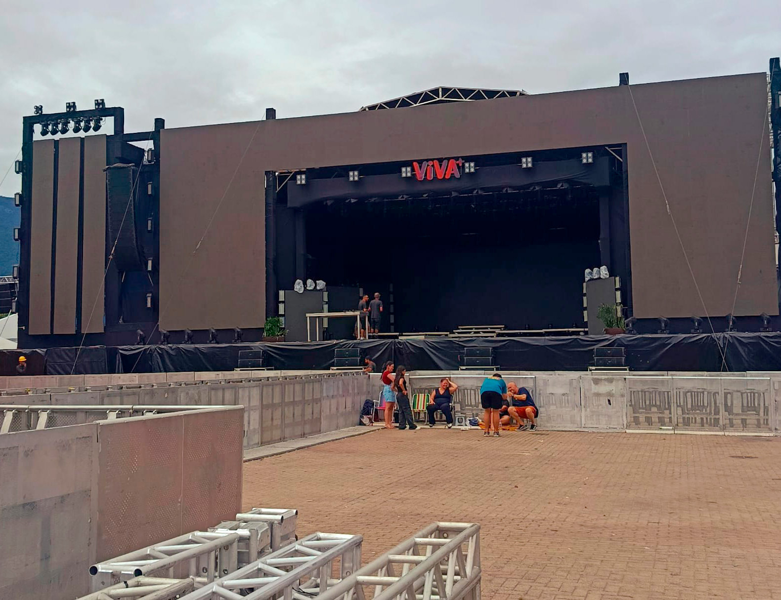 #PraTodosVerem: Fotos mostram o palco de um show ao ar livre, fãs de Luan Santana posando em frente à grade, o espaço ainda em organização e um caminhão personalizado com a imagem do cantor. O clima é de expectativa e alegria dos fãs aguardando o show. Fim da descrição.