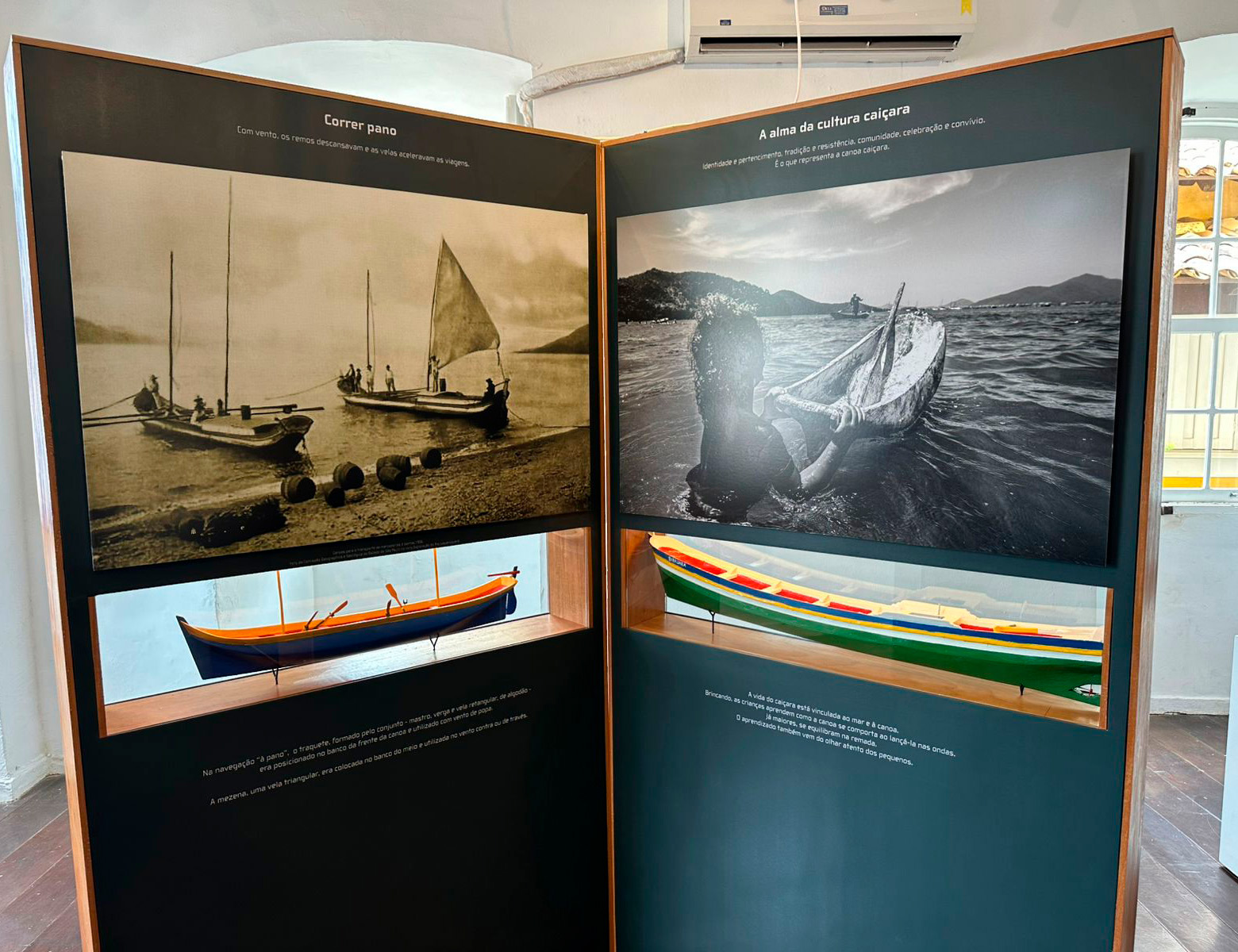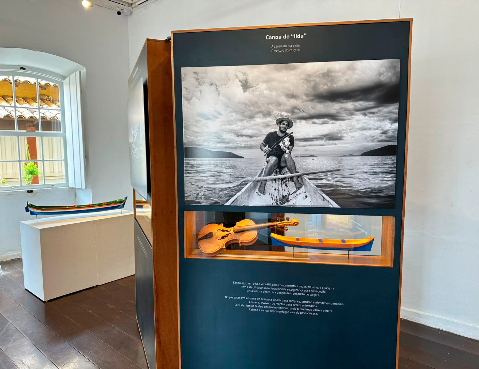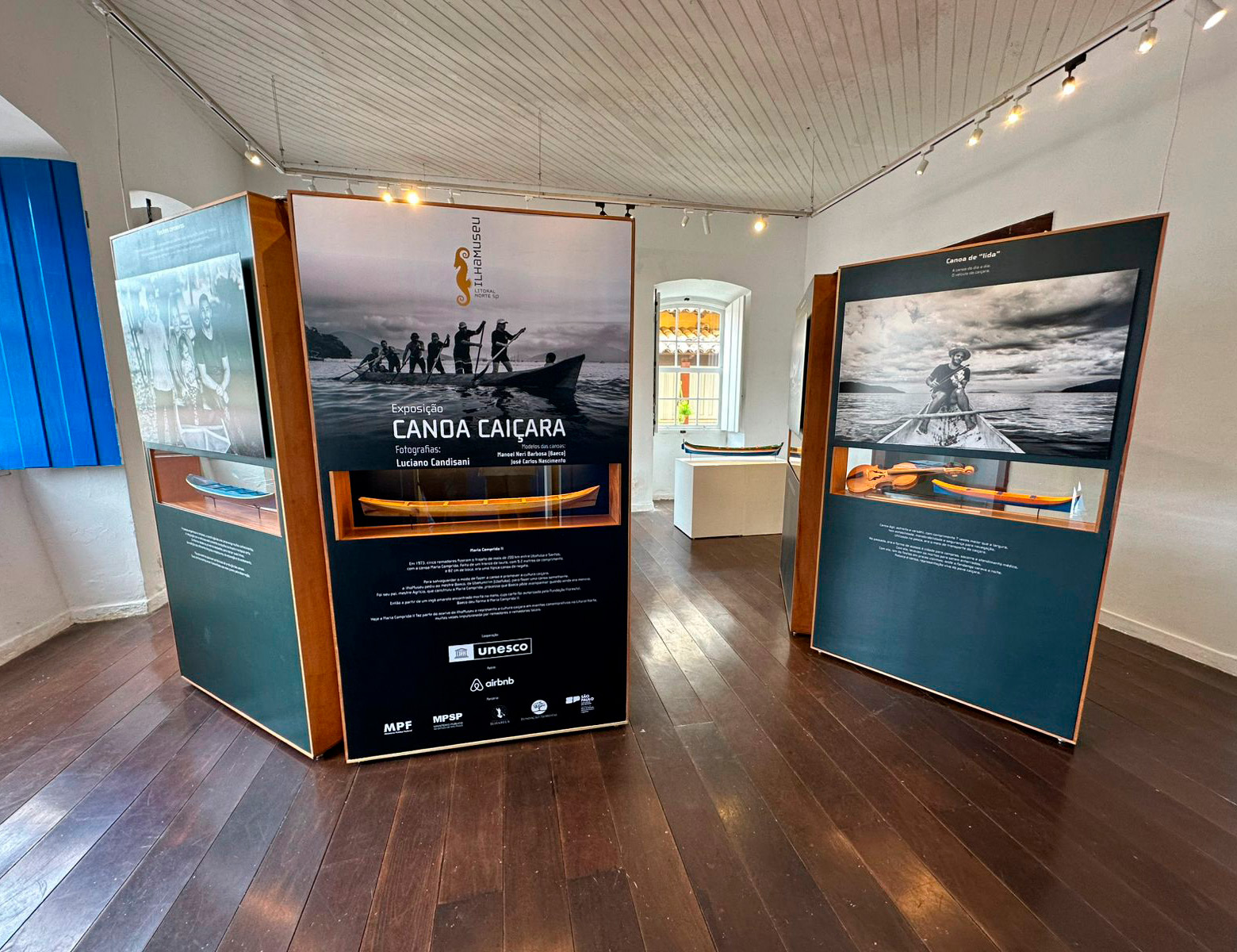A exposição, que posteriormente será incorporada à expografia da IlhaMuseu, apresenta diferentes tipos de embarcações caiçaras, como a histórica 'Maria Comprida II' (canoa de regata), as imponentes canoas de voga utilizadas no transporte de cargas, as versáteis canoas de lida do cotidiano, os robustos batelões destinados às grandes redes de pesca, as engenhosas canoas bordadas para mares mais bravios e as esguias canoas de regata ou corrida. Todas expressam a identidade, a tradição e a resistência do povo caiçara.