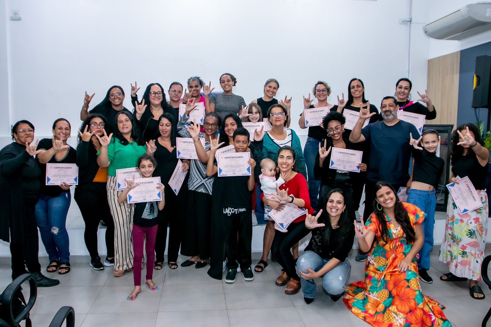 Ao longo de três meses, os participantes, entre alunos da rede e comunidade em geral, tiveram a oportunidade de aprender os primeiros passos da Língua Brasileira de Sinais (Libras), incluindo uma introdução teórica e a prática de alguns dos principais sinais para comunicação e expressão com surdos.