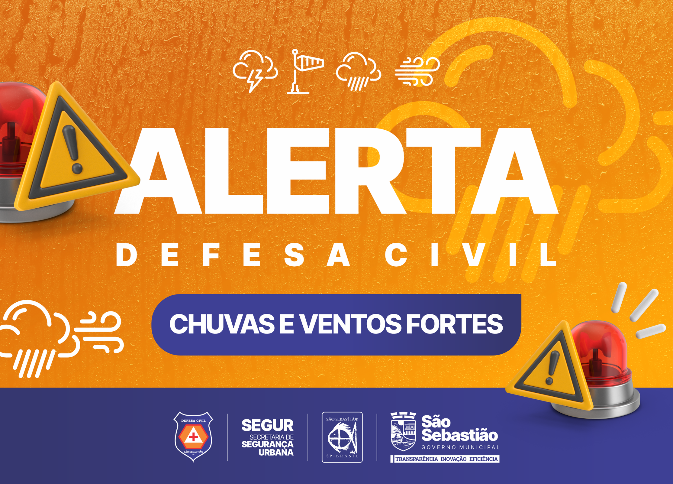 A Defesa Civil de São Sebastião alerta para as fortes chuvas típicas de verão que devem ocorrer entre esta terça e quarta-feira (16 e 17/12) com calor durante o dia e tempestades no cair da tarde. Estão previstos cerca de 80 milímetros por hora em todo o município.