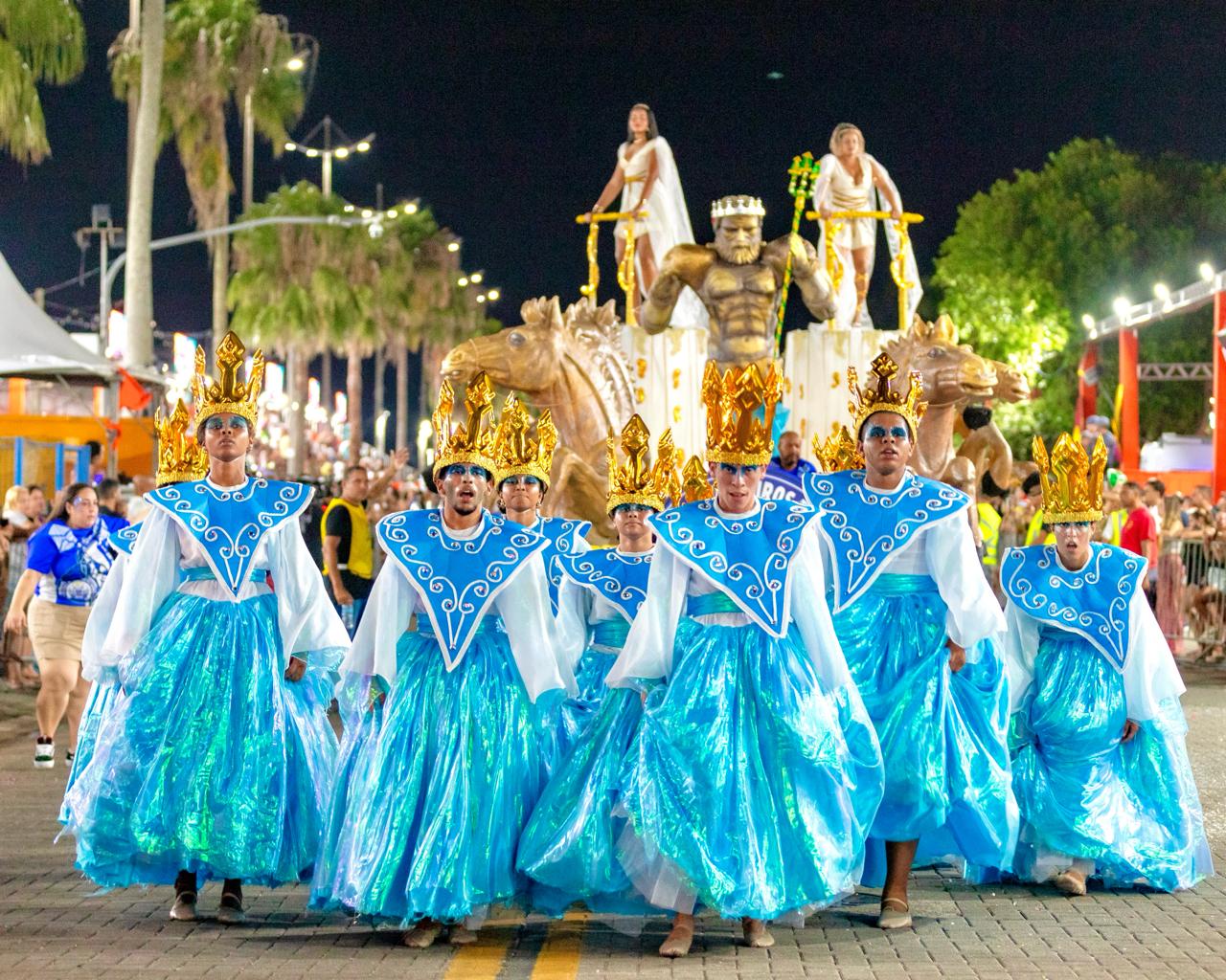 No primeiro dia de desfile, as escolas do grupo de acesso Mocidade Independente da Topolândia, Guerreiros do Samba e Flôr do Morro tomaram conta da avenida e elevaram a energia da galera lá no alto com ritmo e muita alegria.