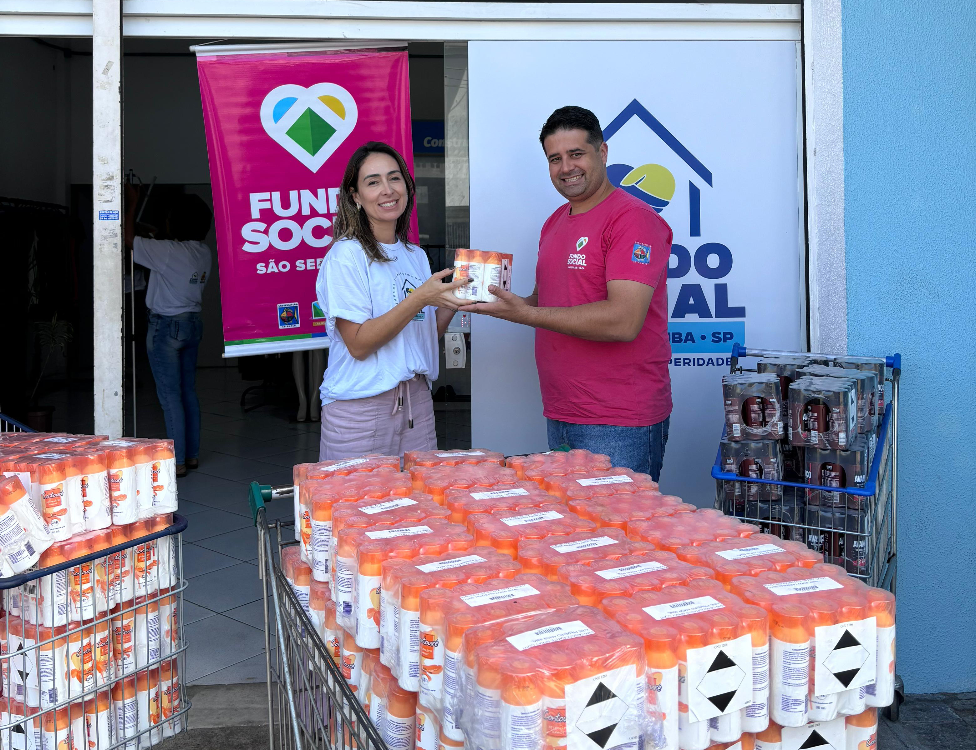 O Fundo Social de São Sebastião recebeu na segunda-feira (15/9), a doação de 10 mil desodorantes do Fundo Social de Caraguatatuba. A entrega foi realizada pela primeira-dama e presidente do Fundo Social de Caraguatatuba, Talita Carneiro para a equipe do Fundo Social de São Sebastião.