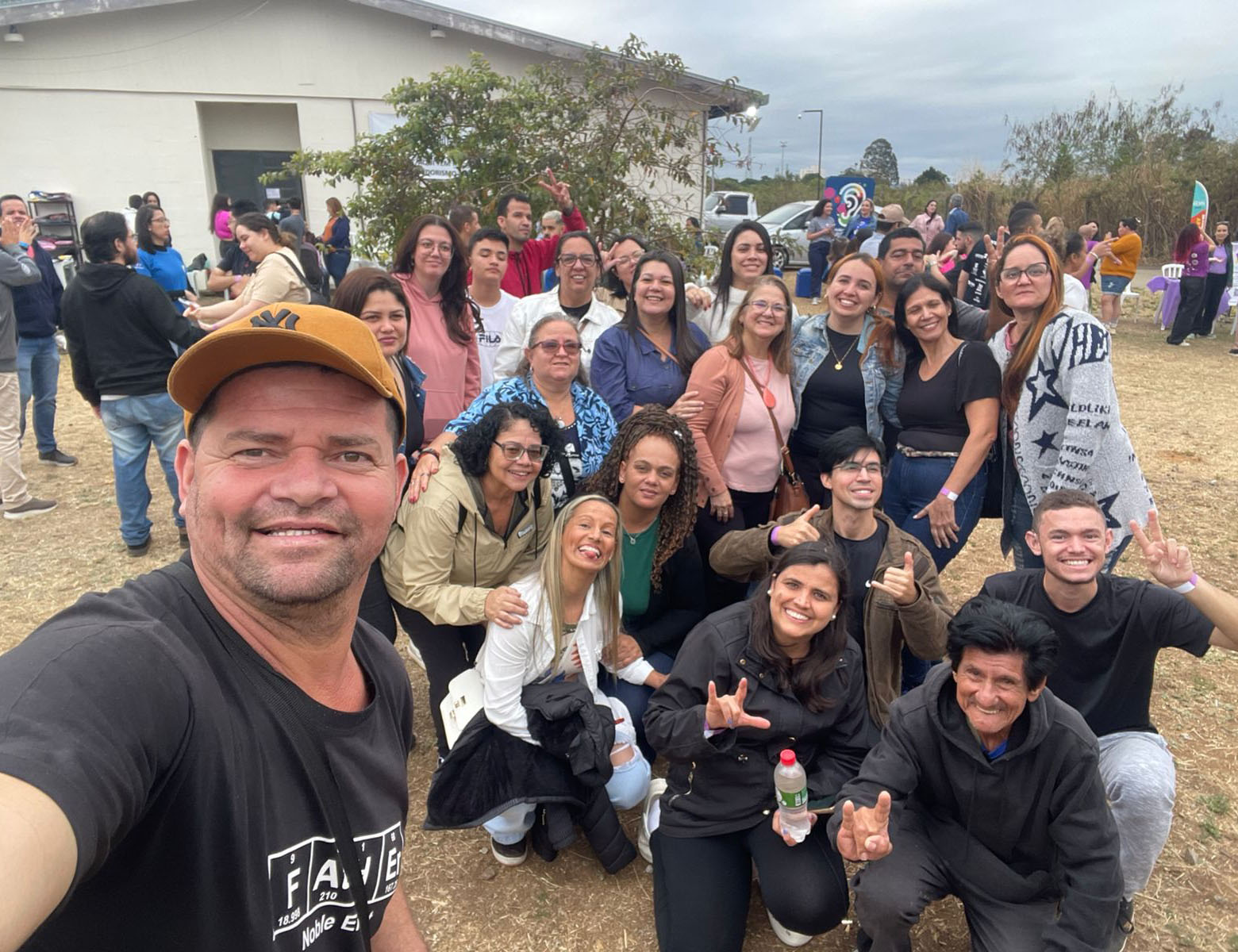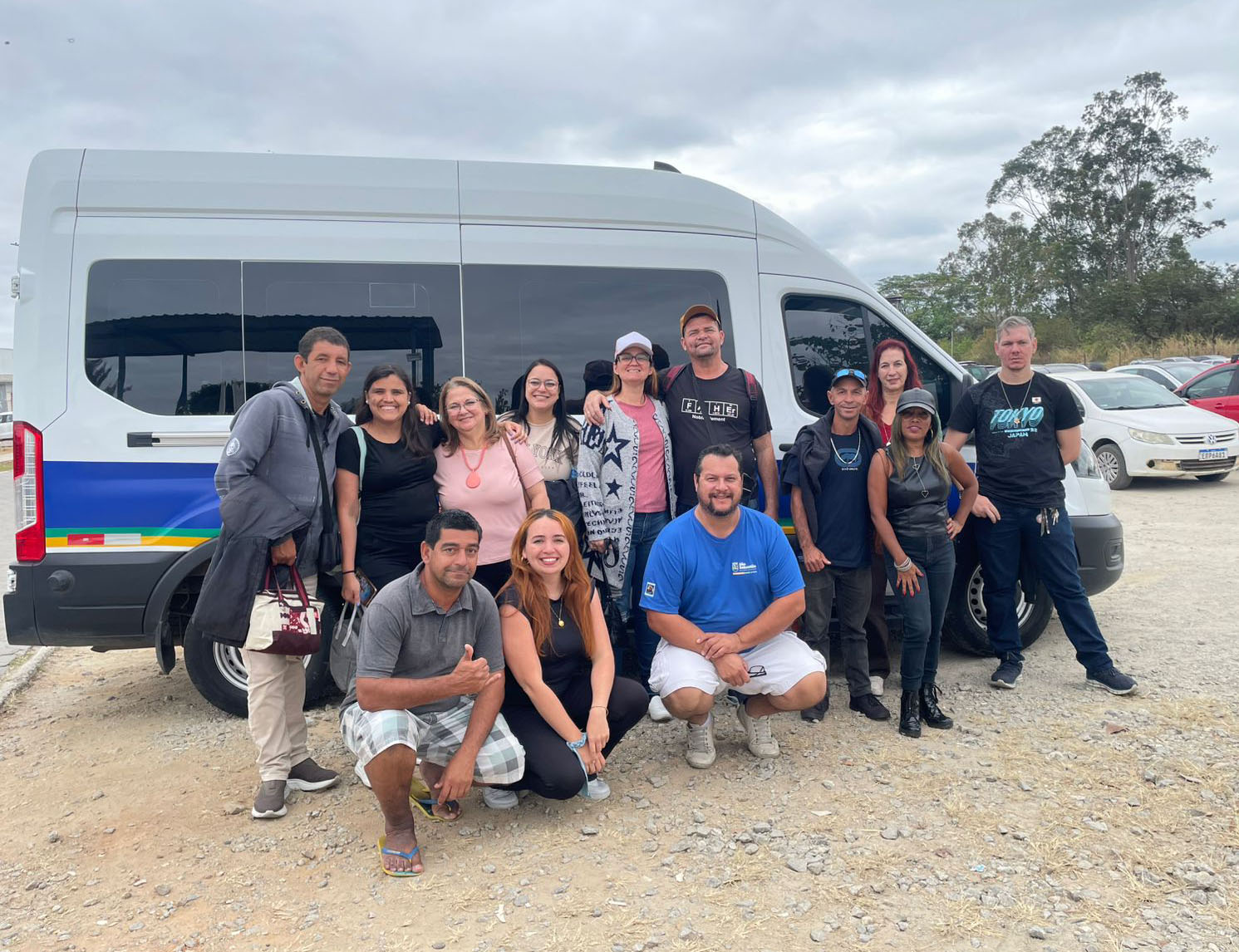 #PraTodosVerem: imagens de um grupo de pessoas reunidas entre homens e mulheres adultas e ao fundo uma Van que ira realizar o passeio. Fim da descrição.