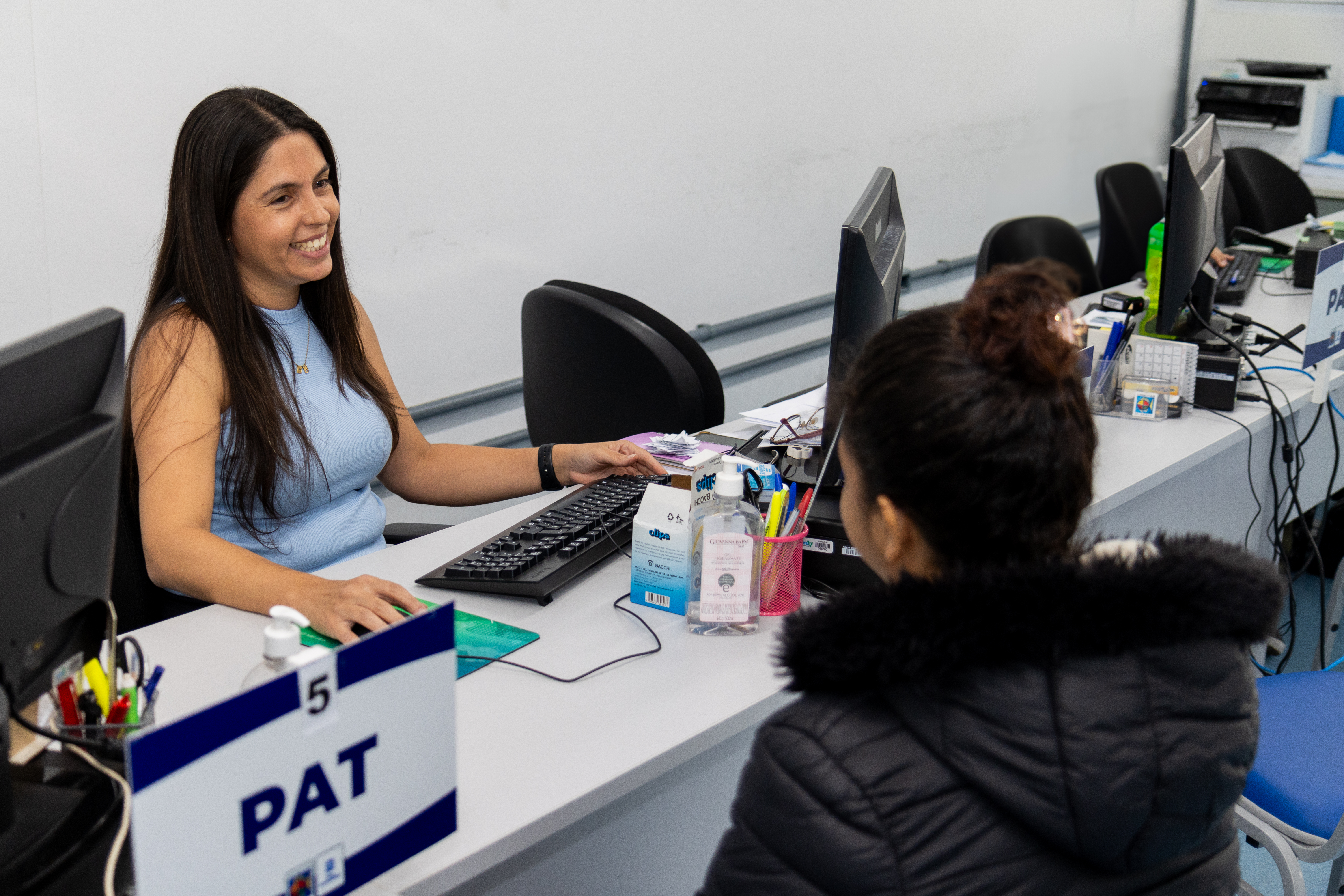#PraTodosVerem: imagem de munícipes sendo atendidos no PAT de São Sebastião. Fim da descrição.