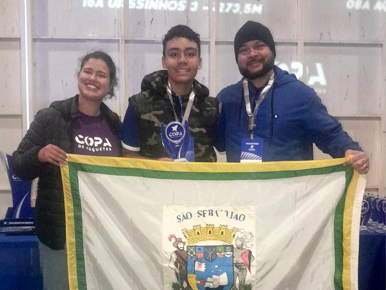 O estudante da rede municipal, Enzo Barboza Bispo dos Santos, do 8º ano da E.M. Prof.ª Patrícia Viviani Santana, da Topolândia, foi destaque. Em sua estreia na competição, Enzo lançou seu foguete a impressionantes 274 metros com o uso de água e ar comprimido, consagrando-se vice-campeão.