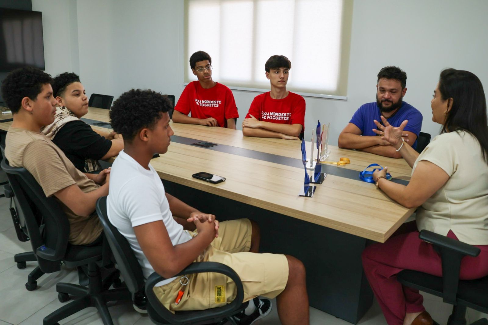 A equipe da Secretaria da Educação da Prefeitura de São Sebastião recebeu na última quarta-feira (16) alunos do município que se destacaram em importantes competições de lançamento de foguetes de garrafa PET, trazendo troféus para a cidade.