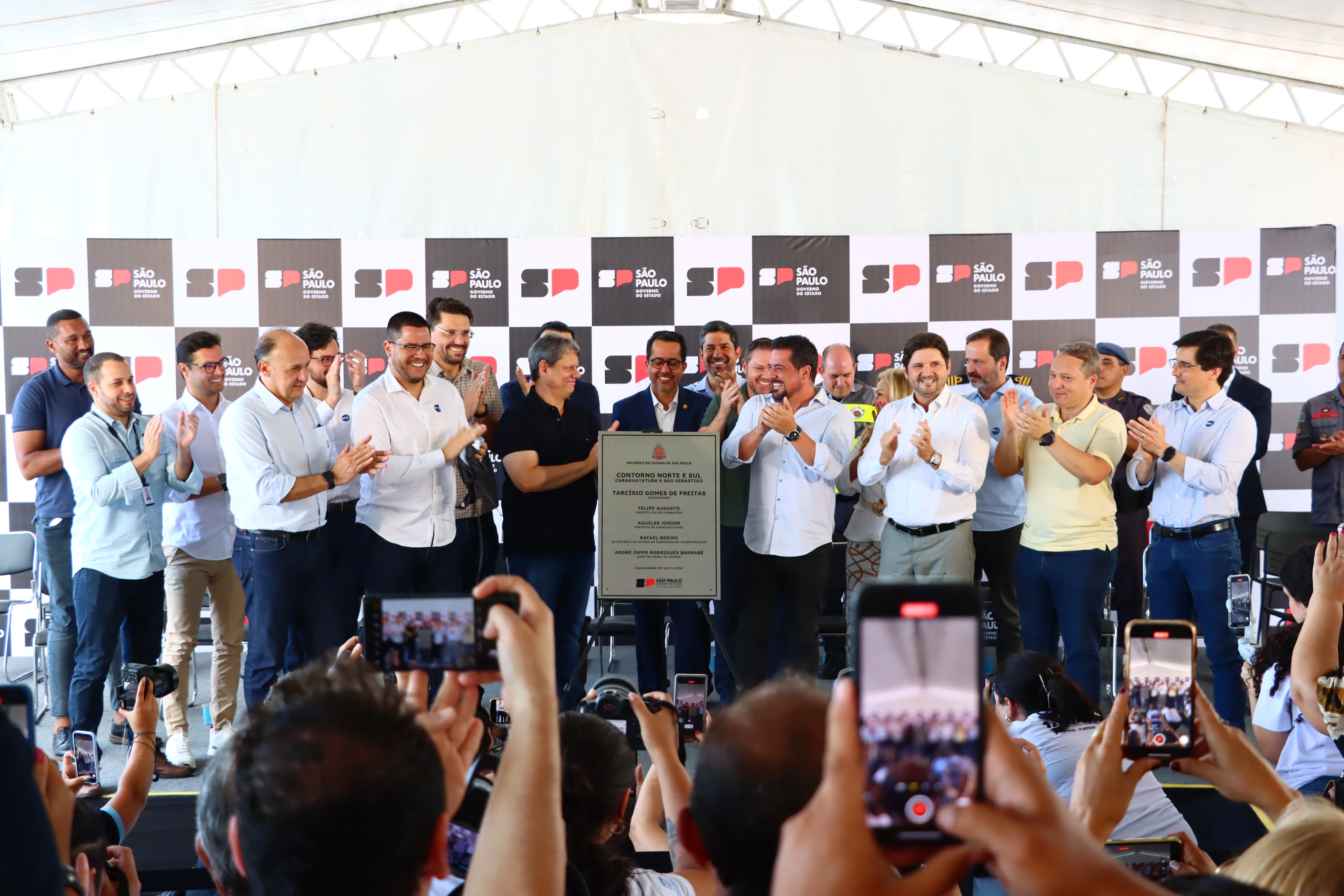 “No final do ano passado, entregamos o Contorno Norte e hoje inauguramos o Contorno Sul. Somadas as duas obras são 33,9 quilômetros, fazendo com que um deslocamento entre Caraguatatuba e São Sebastião, antes feito em 45 minutos, agora poderá ser feita em 16 minutos. A obra garante eficiência, ajuda na logística e abre novas perspectivas para o Litoral Norte, lembrando também do nosso trabalho para modernização do Porto de São Sebastião”, disse o governador Tarcísio de Freitas.