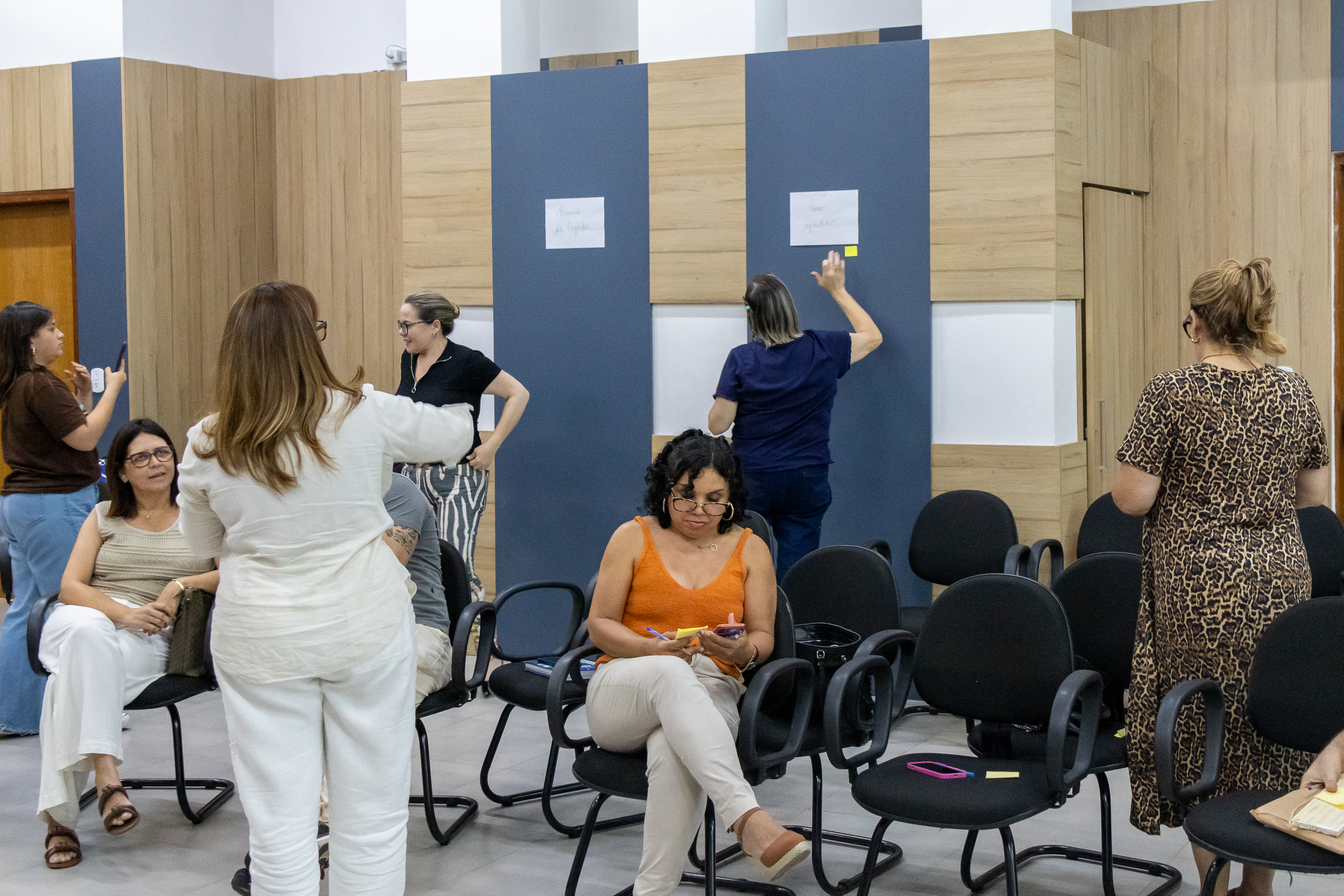 #PraTodosVerem: sequência de fotos mostra fotos de uma dos encontros presenciais da formação sobre fortalecimento de equipes. Fim da descrição.