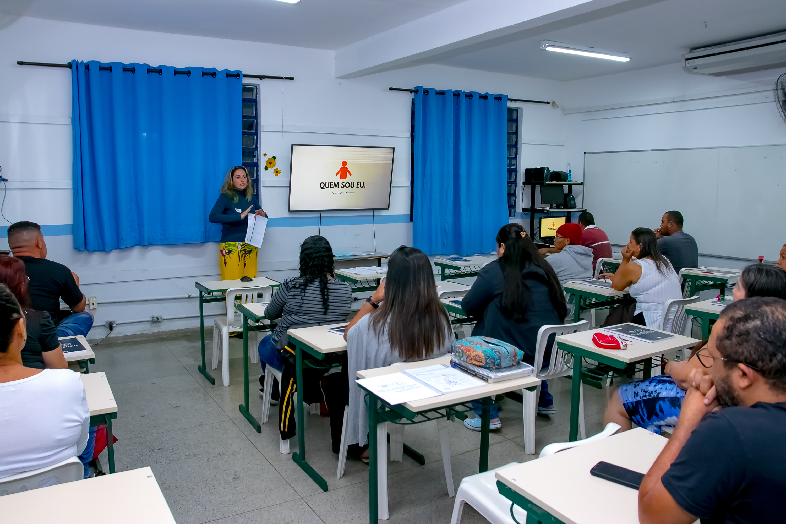 #PraTodosVerem: foto ilustrativa mostra estudantes da Educação de Jovens e Adultos na escola. Fim da descrição.