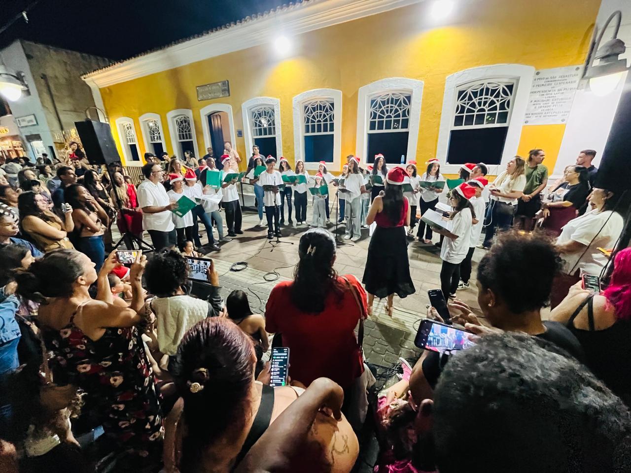 Vinte e cinco estudantes da rede municipal de São Sebastião fizeram uma emocionante apresentação do Coral de Natal na última terça-feira (17) na Rua da Praia. A ação foi organizada pela Secretaria da Educação (SEDUC), por meio dos projetos Jovens em Atuação e Música na Escola e teve como objetivo valorizar o talento dos alunos, promover a integração entre as escolas e levar uma mensagem de paz, esperança e solidariedade para a comunidade.
