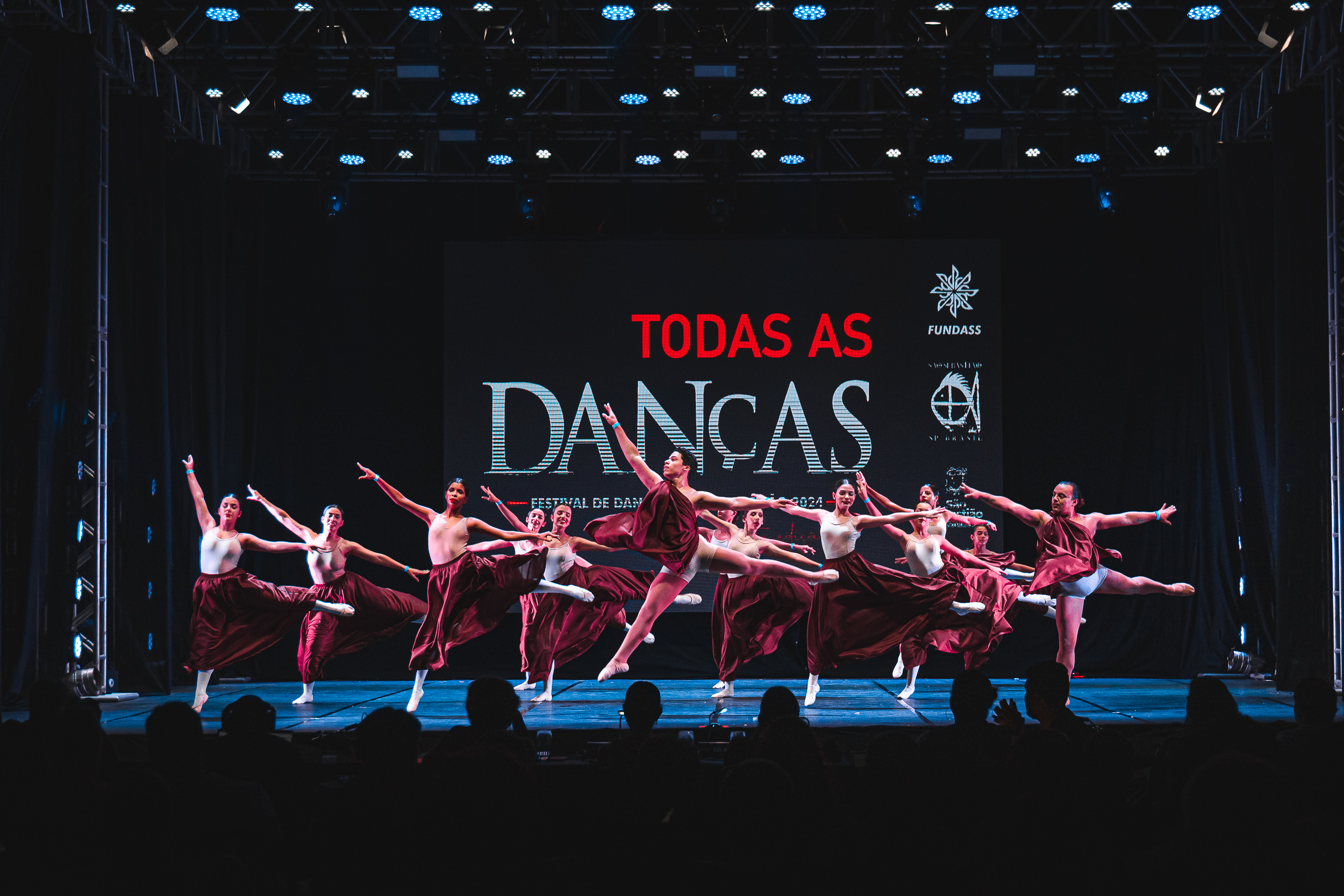 #PraTodosVerem: imagens de bailarinos durante apresentações no ‘Todas As Danças – Festival de Dança de São Sebastião 2024’. Fim da descrição.
