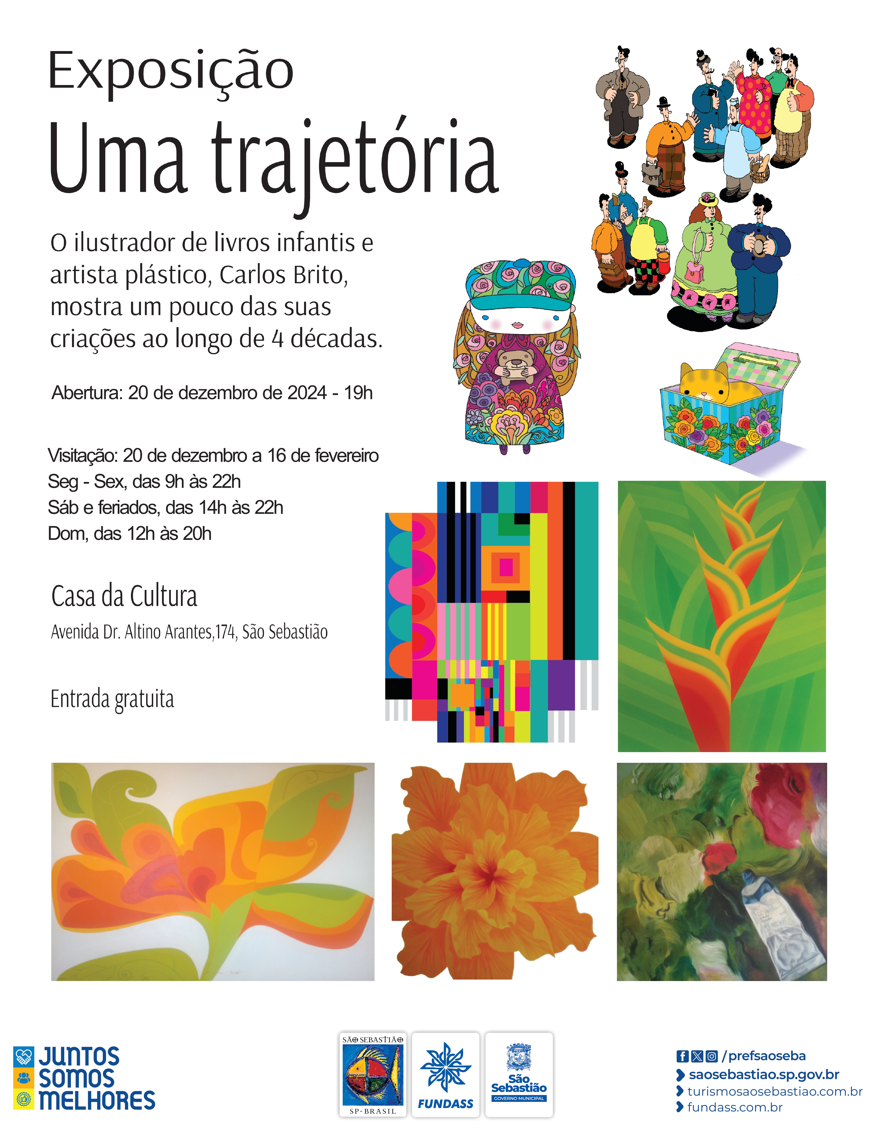 A mostra celebra os 40 anos de carreira do ilustrador de livros infantis e artista plástico Carlos Brito, reunindo um conjunto de obras que traduzem sua trajetória. A exposição abrange desde ilustrações premiadas para livros infantis até suas criações mais recentes, que exploram técnicas geométricas e abstratas.