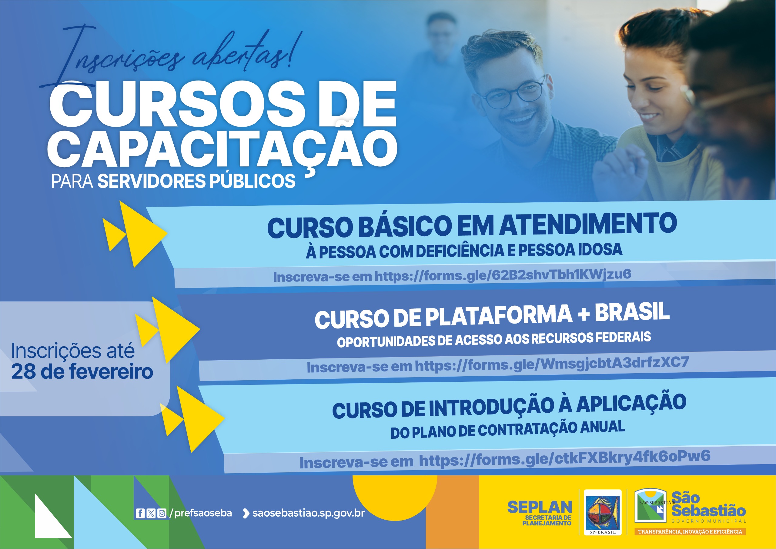 A Prefeitura de São Sebastião, por meio da Secretaria de Planejamento (Seplan), está com inscrições abertas para três cursos gratuitos de capacitação voltados aos servidores municipais, ofertados pela Escola de Governo e Gestão. O objetivo é fortalecer a gestão municipal e melhorar a qualidade dos serviços prestados à população.