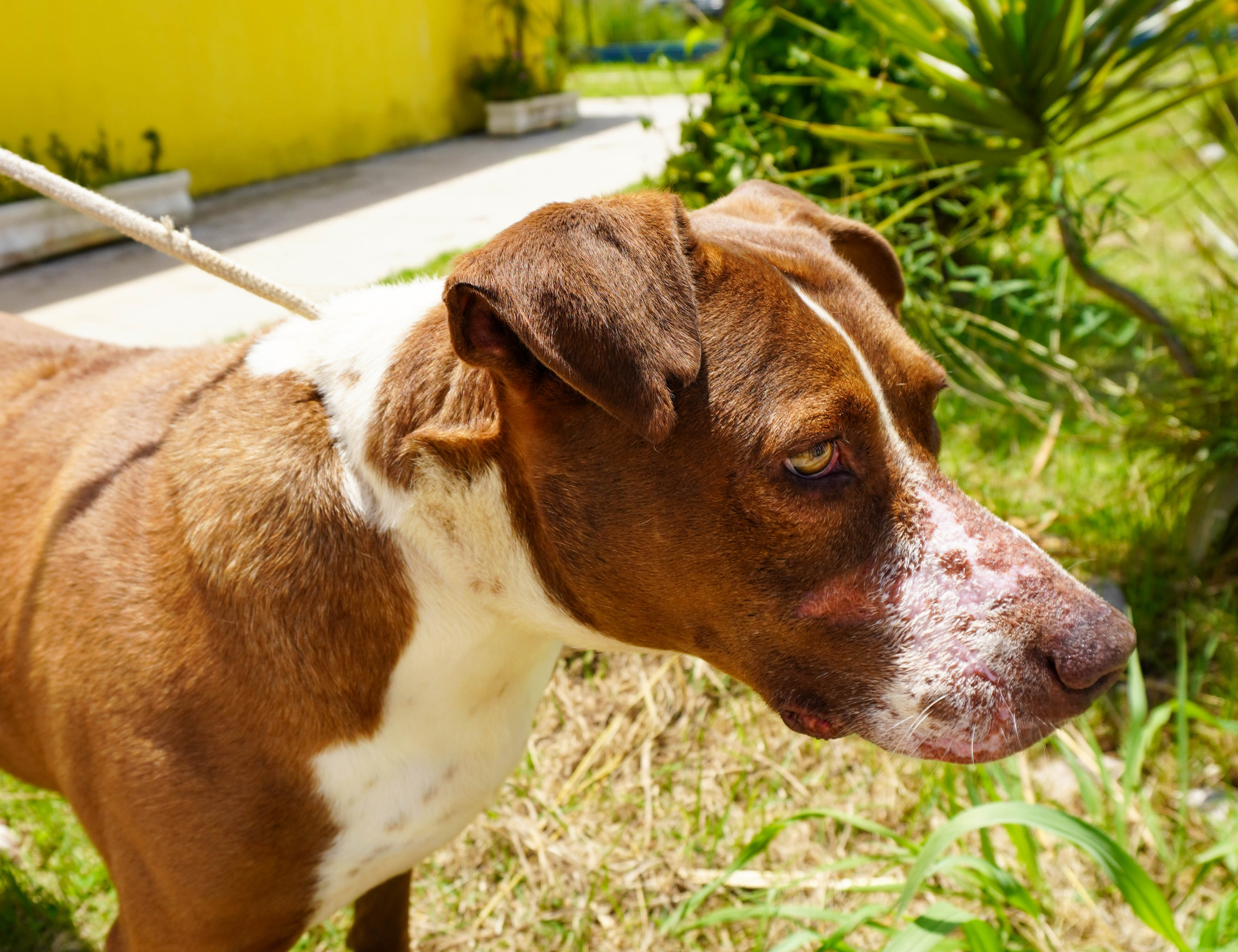 #PraTodosVerem: O pitbull Spike recebeu novo acolhimento após ser novamente resgatado de situação de maus-tratos. O animal está sob cuidados do Centro de Controle de Zoonoses de São Sebastião e poderá ser disponibilizado para adoção responsável após os trâmites legais. Fim da descrição.