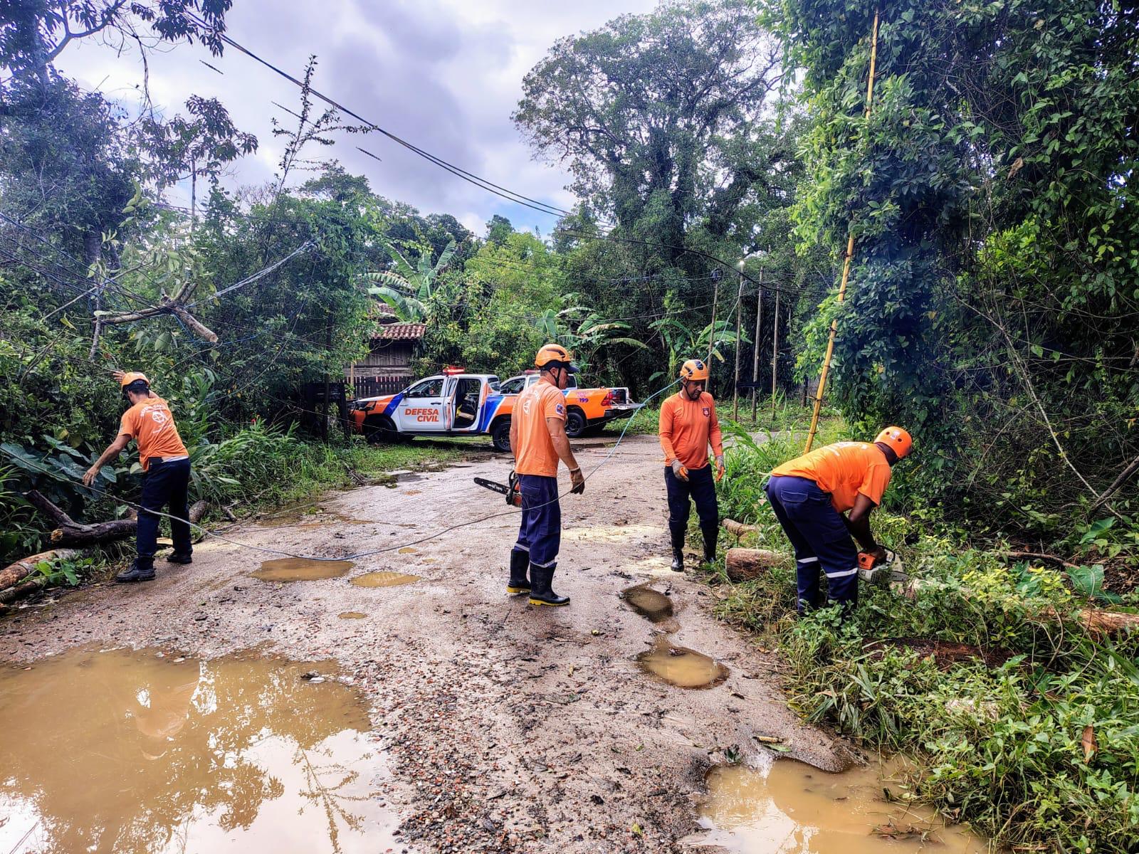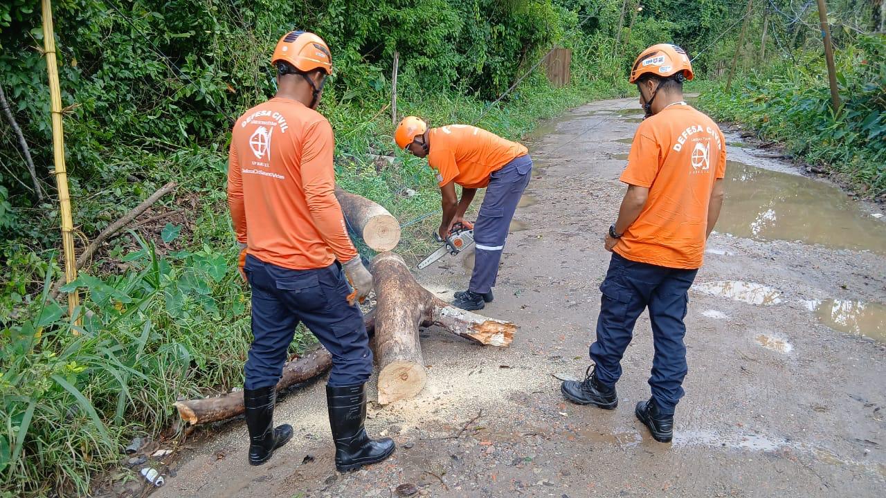 #PraTodosVerem: Fotos mostram a equipe da Defesa Civil em campo, atuando na remoção de árvores e no monitoramento das áreas afetadas.