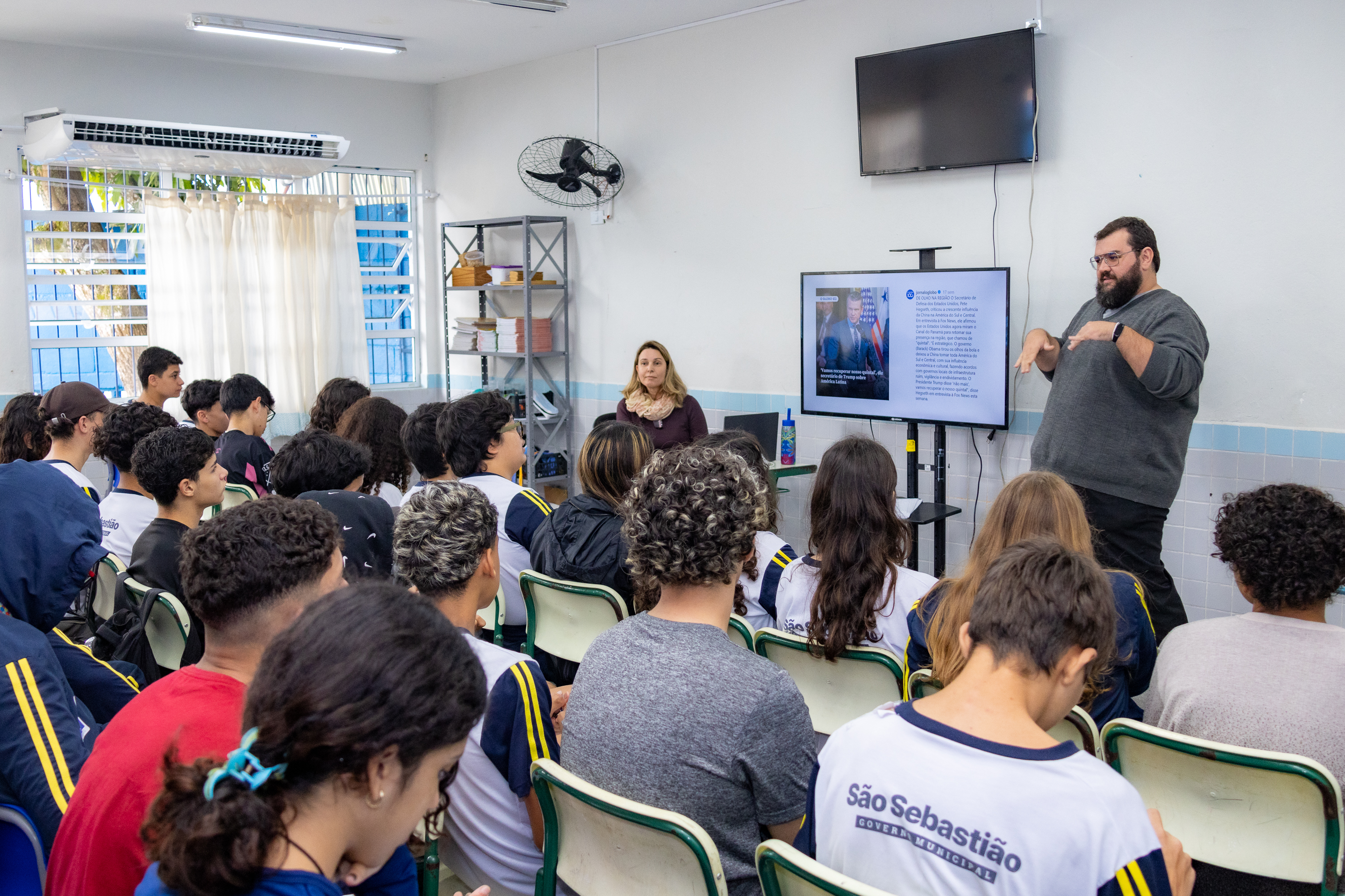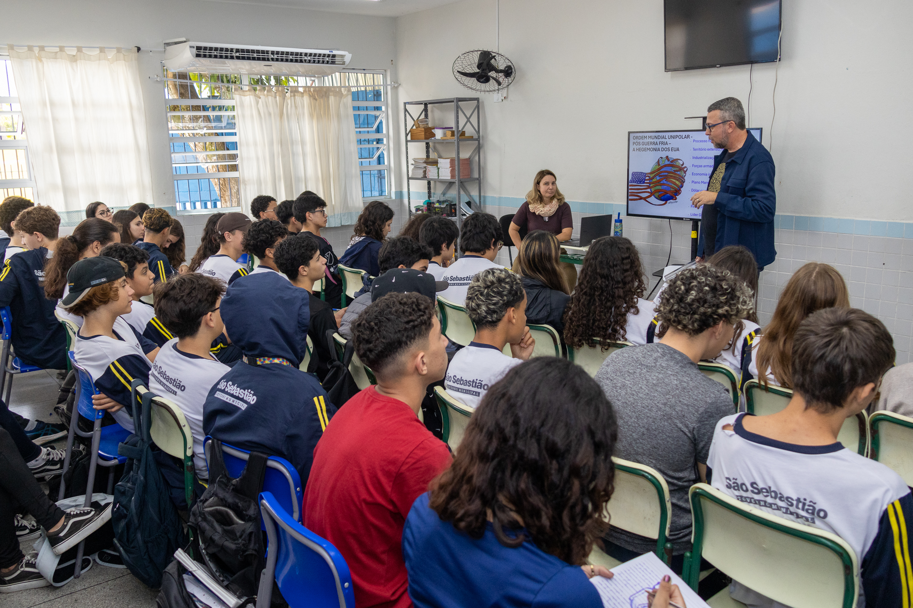 Na disciplina de História, foi abordada a subserviência histórica do Brasil em relação aos EUA, incluindo a Doutrina Monroe, a política do Big Stick e o Golpe Militar de 1964 como consequência da Guerra Fria. Já em Geografia, os estudantes analisaram a Ordem Mundial Unipolar, a ascensão da China, o fortalecimento do BRICS e o papel do Brasil como potência regional, além da relação comercial entre Brasil e Estados Unidos, com foco no chamado “Tarifaço”.