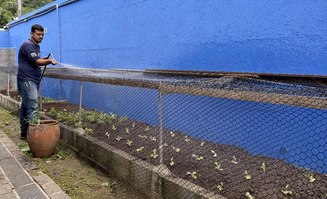 O trabalho vem sendo desenvolvido há mais de um ano na creche e no começo desse mês já foi realizada uma colheita de hortaliças.