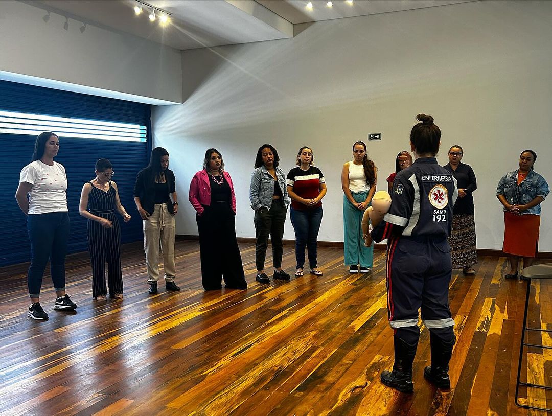 A capacitação incluiu instruções práticas sobre como agir em casos de convulsões e realizar a manobra de desengasgo em bebês e crianças, situações que exigem rapidez e precisão para evitar complicações graves.