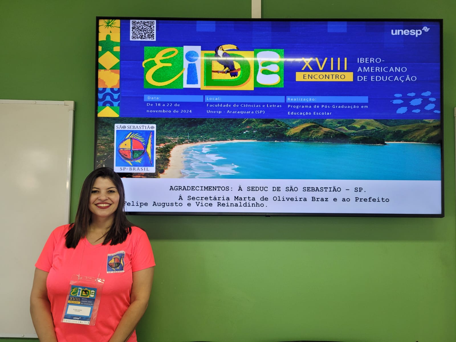 #PraTodosVerem: fotos mostram participação da coordenadora Eliana Alves Arxer durante o XVIII Encontro Ibero-Americano de Educação. Fim da descrição.